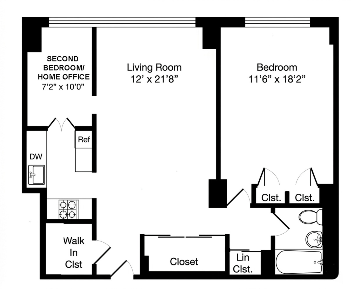 Peaceful, oversized junior four offering exceptional flexibility as a convertible two-bedroom, complete with a spacious dining alcove ideal for a home office or second bedroom. The expansive living room provides ample room for both comfortable living and effortless entertaining.