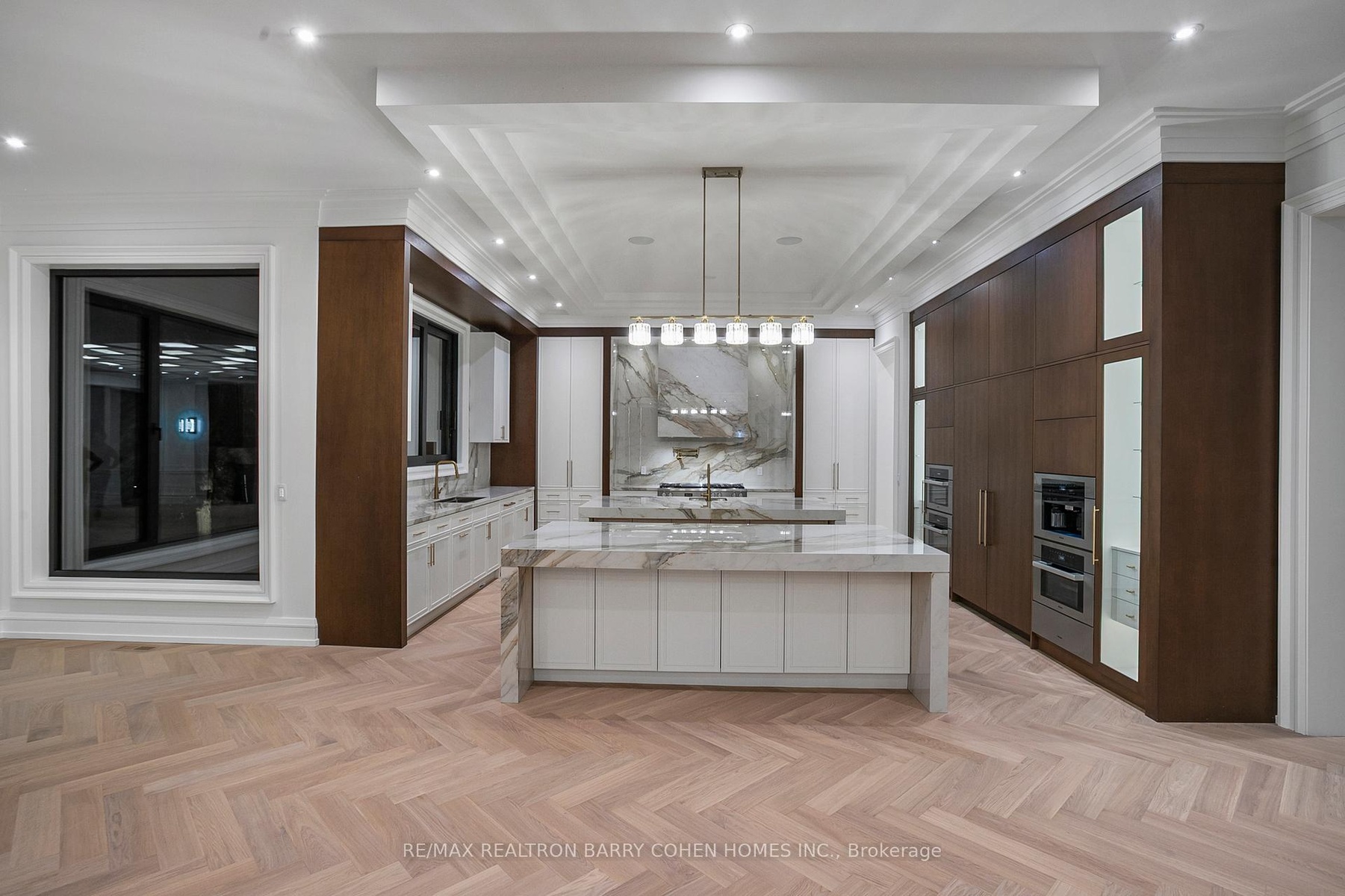 Architecturally Significant Iconic Estate , Situated on Toronto's Most Exclusive & Prestigious Banbury Neighborhood With Walking Distance To Bridle Path Trail. Over 7300 Sqft. Above Grade Luxurious Living Area Plus Over 3000 Sqft. Finished And Walkout Heated Basement, Designed And Crafted By An Acclaimed Architect & Builder. Clad in Indiana Limestone Front Elevation W/Architectural Brick Accents, Enhanced by Lush Landscaping, a Heated Driveway & Dramatic Exterior Lighting. Exceptional Craftsmanship is Showcased Throughout W/Custom Walnut & White Oak Millwork, Imported European Slabs, 12' Ceilings, Elegant Wall Paneling, Detailed Moldings, Heated Floors & Custom Wood Accent Walls. Floor-to-Ceiling Tilt & Turn Aluminum Windows & Sliding Doors, Flood The Home W/Natural Light. The Grand Foyer Features Imported Italian Slabs, a Striking Staircase, And An Oversized Skylight, Setting a Refined & Elegant Tone. Expansive Principal Rooms Highlight Chevron Hardwood Floorings, Gas Fireplaces, And Book-Matched Italian Slab Feature Walls.The Chef-s Kitchen Offers Dual Islands, Top-Of-The-Line B/I Appliances, a Butlers Pantry W/Servery Access to the Formal Dining Room & Custom Cabinetry. The Breakfast Area & Oversized Family Rm. Include Large-Scale Aluminum Sliding Doors Leading to an Expansive Deck & Concrete Swimming Pool. A 4-Stop Elevator Services All Three Levels, Plus an Additional Private Lift W/Direct Garage Access Fully Accessibility-Friendly. The Primary Retreat Boasts Coffered Ceilings, a Wet Bar, Fireplace, Boutique-Style Hers Dressing Boudoir, His Closet, And a Lavish 7-Piece Ensuite Designed to Impress. The Entertainment-Ready Basement Boasts an Oversized Recreation Area W/ 2 Double Aluminum Sliding Doors Offering Garden-Level Views And Abundant Natural Light, a Large Gym W/Washroom and Dry Sauna, a Home Theatre, Additional Washer/Dryer, And Direct Access From the Garage Complete W/a Dog Wash Station & Elevator Access. The Finest in Luxury Amenities!