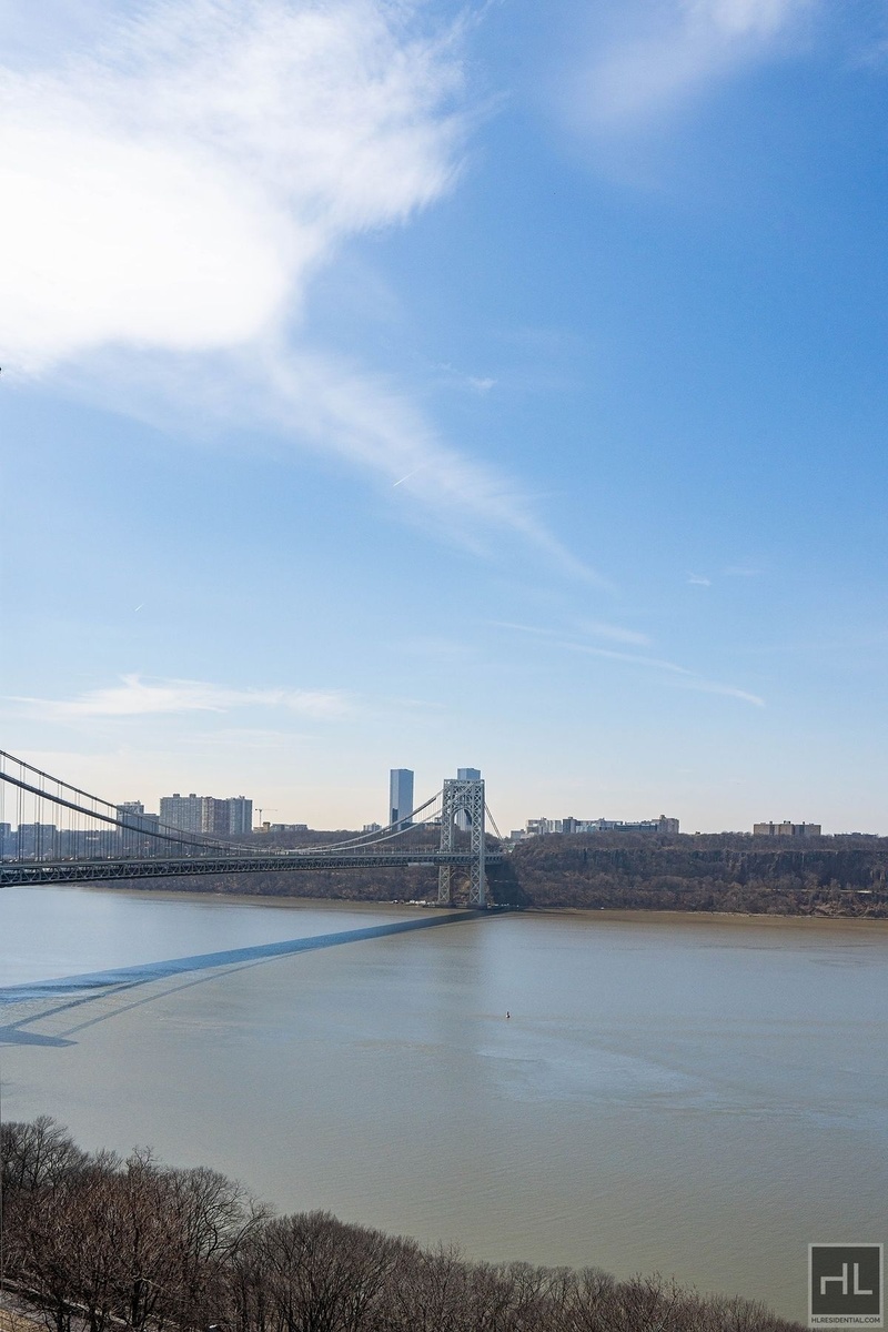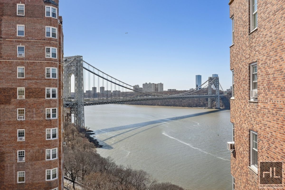 Hudson River and GW Bridge. A windowed kitchen-thoughtfully updated with premium