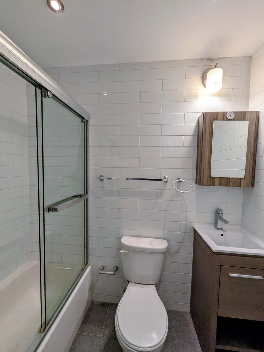 The apt features an upgraded kitchen with dishwasher, 2 newer bathrooms and full sized laundry in unit.