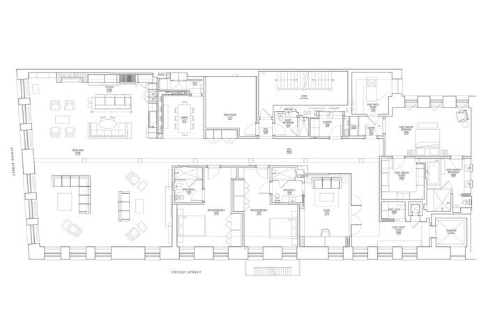 First full-floor loft to become available at 76 Crosby in over a decade. Rare opportunity to own a 5,262 SF corner loft in a boutique 24-hour doorman condominium in the heart of SoHo.