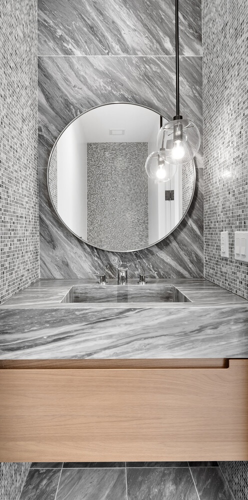 Each bathroom is thoughtfully designed with rich stone finishes and custom wood cabinetry, creating a spa-like retreat. A private balcony extends your living space outdoors, offering breathtaking river and city views.