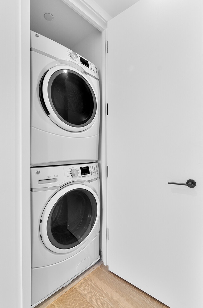Located in the prestigious Two Waterline Square, this home showcases refined design by Yabu Pushelberg, blending timeless elegance with modern comfort. The custom Italian kitchen by Scavolini is both stylish and functional, featuring top-of-the-line Gaggenau appliances, sleek Dornbracht fixtures, a fully vented range hood, and a wine refrigerator-perfect for everyday living and entertaining.