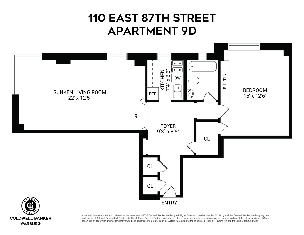 Perfectly positioned in the heart of Carnegie Hill, Residence 9D at 110 East 87th Street is a gracious one bedroom CONDO that blends classic prewar charm with modern livability.