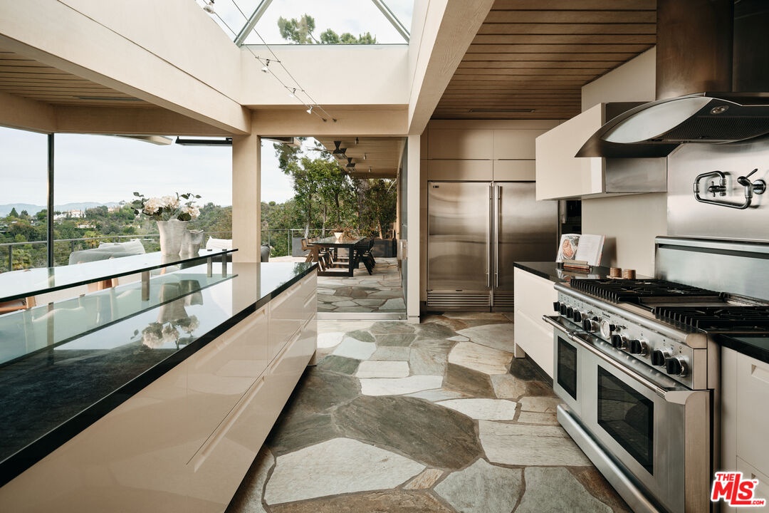Perched high within the legendary hills of Trousdale Estates, where architecture becomes art and the horizon feels endless, a residence conceived by visionary architect Harry Gesner takes form. Bold, sculptural, and unmistakable, 624 Cole Place is a master expression of mid-century modern design, positioned to capture panoramic jetliner views from Beverly Hills to Catalina Island and across the valley. From arrival, the home emerges from the hillside with quiet authority. Signature rooflines soar overhead, and walls of glass dissolve into the horizon as natural light moves freely from dawn to dusk. Gesner believed architecture should live in conversation with nature, and here the skyline becomes a permanent part of the interior experience. Each space unfolds with intention, offering its own perspective and relationship to the view. From intimate corners to grand entertaining spaces, the city reveals itself in layers, constantly shifting, always spectacular. Daily living becomes cinematic. Hosting feels effortless. Even silence feels elevated. Outside, expansive terraces float above the landscape, while the pool provides a front-row seat to Los Angeles by day and a glittering sea of lights by night. It is Southern California indoor-outdoor living at its most refined. Offered for the first time in over two decades, the residence reflects a level of architecture that tends to be held, not traded.