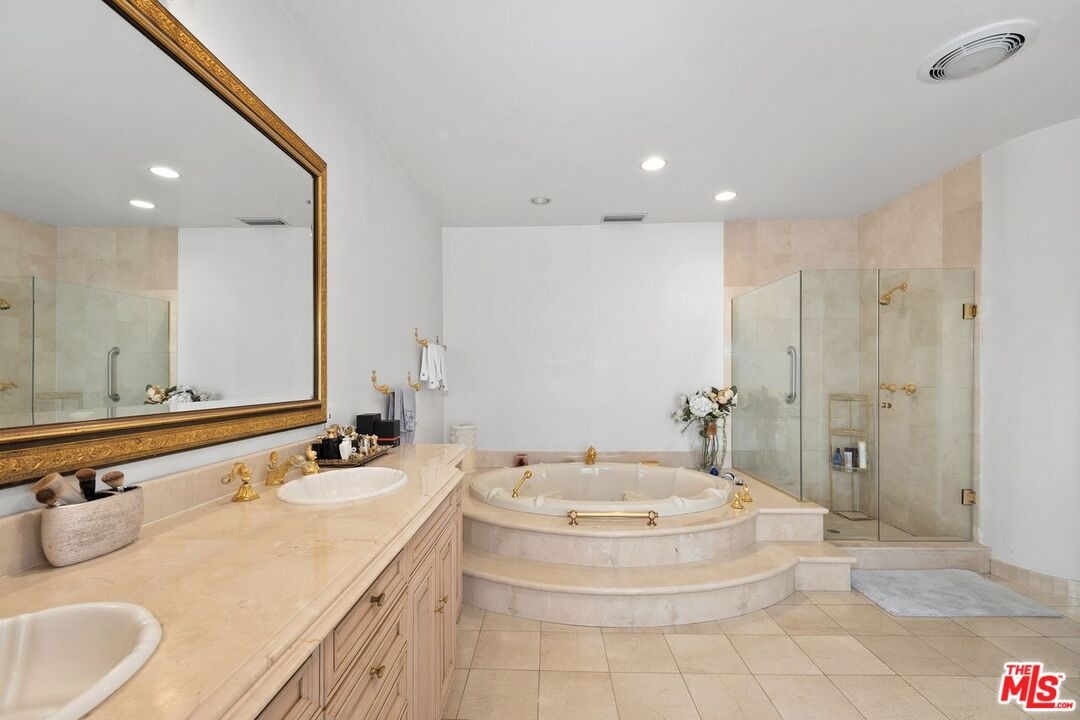Nestled in the coveted, gated community of Fremont Place, this residence is surrounded by stately homes and lush gardens. Elevated above street level, the home boasts a commanding presence and majestic curb appeal. Step through the dramatic entrance into the elegant formal living and dining rooms, perfect for hosting refined gatherings. The large, wood-paneled family room flows seamlessly into the garden and inviting pool area, creating an ideal setting for indoor-outdoor living. Each of the five generously-sized bedrooms features its own ensuite bathroom, with an additional bathroom on the landing, bringing the total to six. The open-plan kitchen is a chef's dream, equipped with both electric and gas stovetops to accommodate any culinary adventure. The four-car garage offers direct access to the property, ensuring added security and convenience, while the expansive motor court provides ample parking for guests. Discover the perfect blend of luxury, comfort, and style in this exceptional home, set in one of the most desirable locations within Fremont Place.