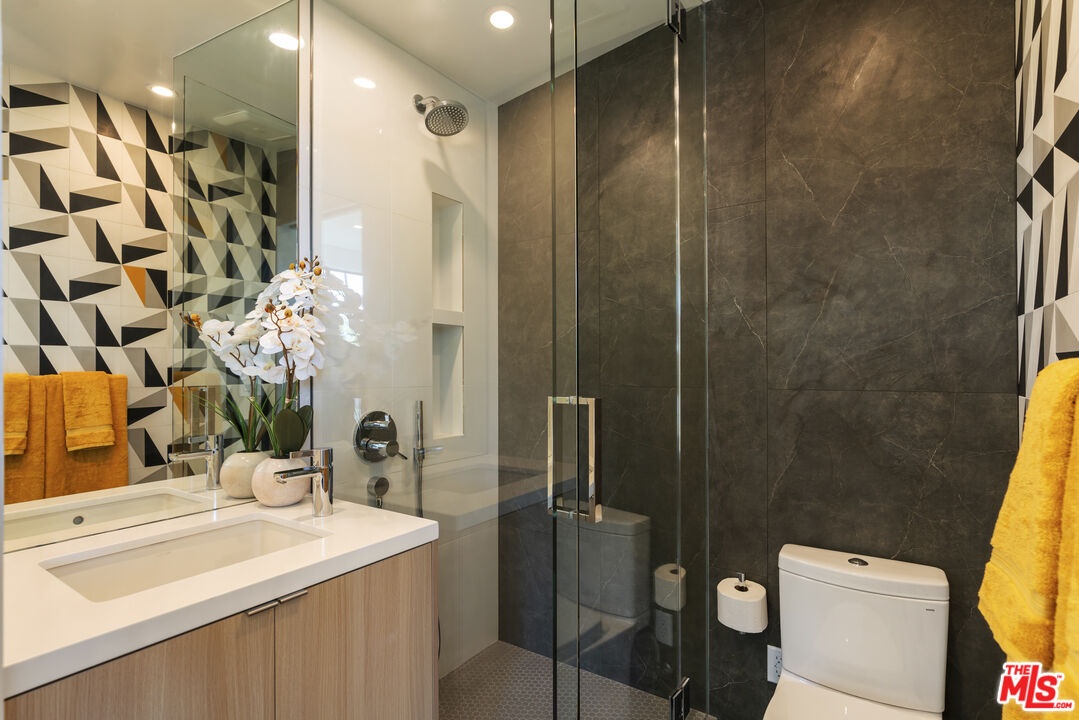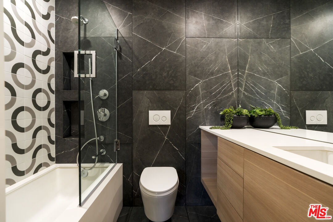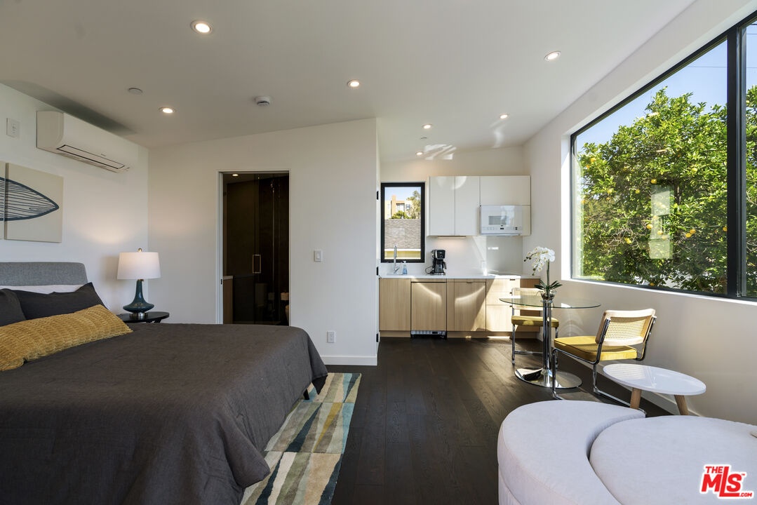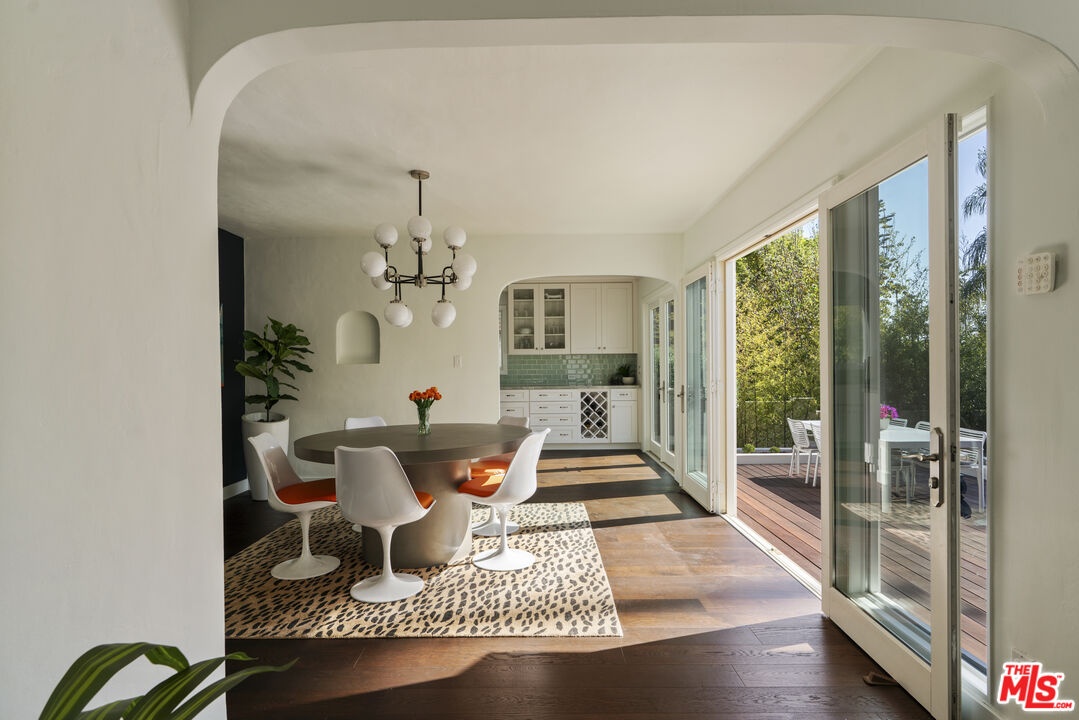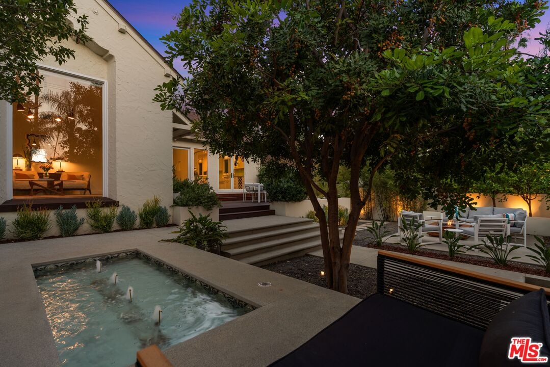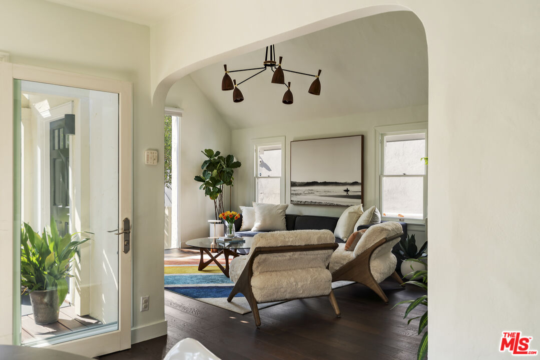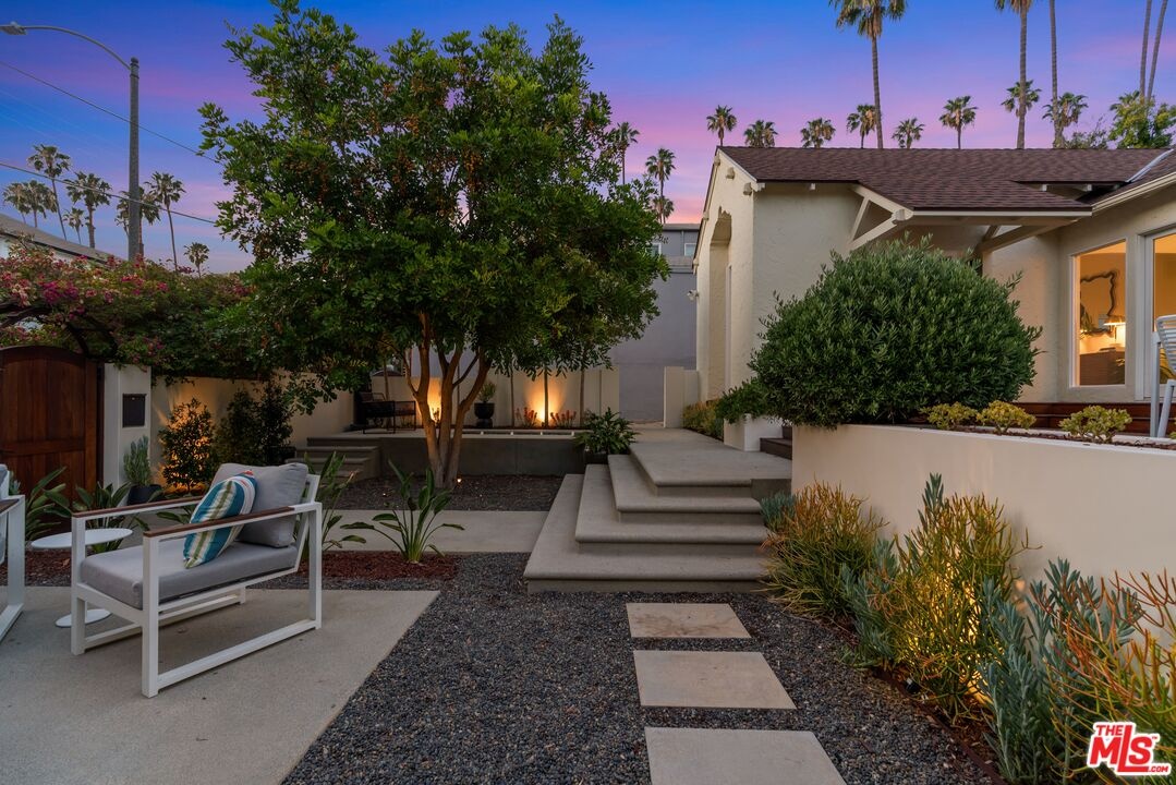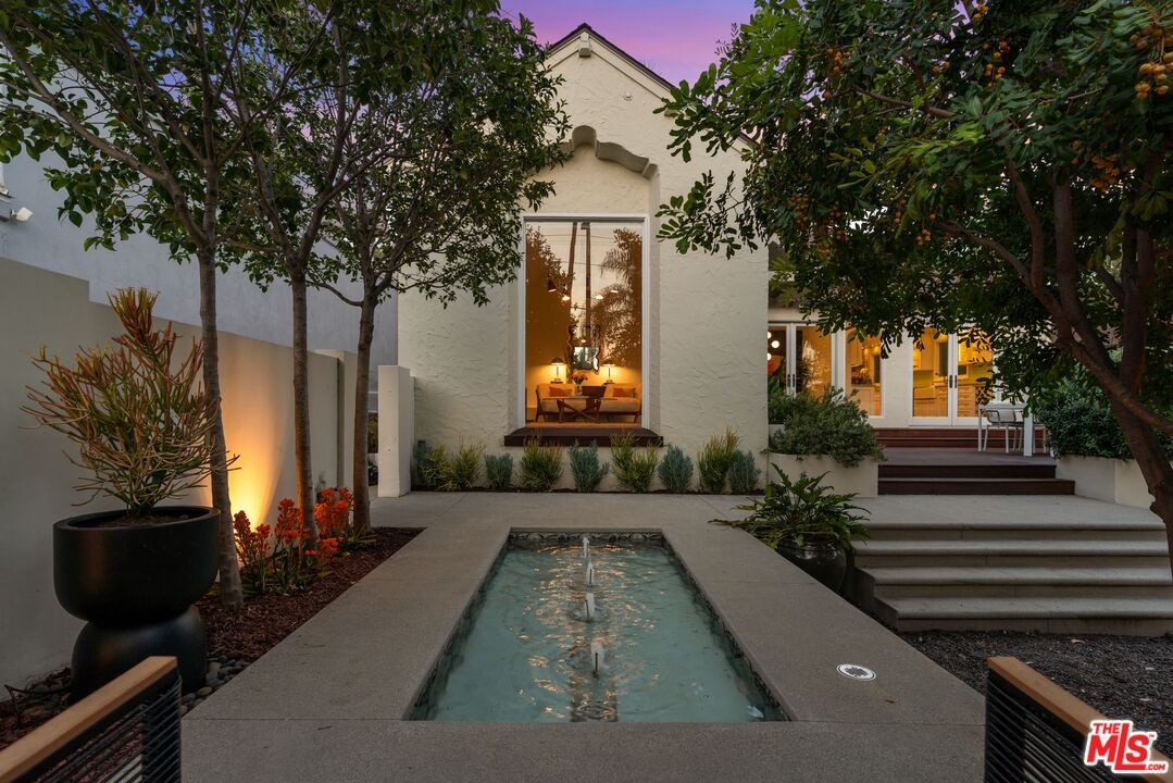 Reimagined and expanded, this 1920 California Bungalow sits gracefully in the coveted Sunset Square HPOZ. A brand-new 2026 ADU and versatile bonus room complete this private mini compound, nestled on a generous gated lot surrounded by mature landscaping, offering serenity and seclusion in the center of Hollywood. The main residence features 3 bedrooms and 2 bathrooms, blending original architectural details such as coved ceilings, double-hung windows, and arched doorways with fresh modern updates, including new wood floors and thoughtfully redesigned bathrooms. Abundant natural light pours through the glass walls, creating a seamless flow between the indoor and outdoor living spaces. The chef's kitchen, equipped with a Viking range, opens onto an expansive ipe deck that wraps the home, featuring multiple outdoor living and dining areas, ideal for entertaining or relaxed California living. The newly constructed ADU mirrors the home's classic arched design and features a fully detached bedroom and bath with views of the city lights. Perfect as a guest suite, studio, or potential rental, it adds exceptional flexibility. Below the ADU is a bonus space with a half bath and a wet bar, currently styled as a home gym, that faces the yard and the main house. Completing this unique sanctuary are an outdoor kitchen, a tranquil fountain, and beautifully cultivated gardens that blur the lines between indoor comfort and outdoor luxury, embodying the quintessential California lifestyle.