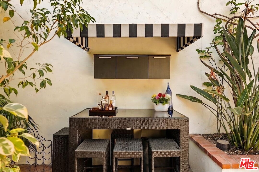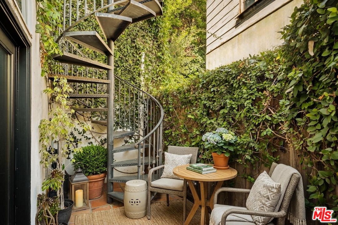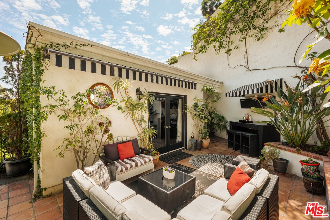 Chateau Marmont vibes, timeless hillside Hollywood glam, and seamless indoor-outdoor living. This Outpost Estates retreat offers an exceptional opportunity to own in one of the Hollywood Hills' most coveted enclaves at an attractive price, just under $2M. Inside, vaulted ceilings, Saltillo tile floors, and a striking Spanish tile staircase create a warm, design-forward aesthetic. The updated kitchen features reclaimed wood cabinetry, artisan tile, and premium appliances, including a Wolf range. Designed for the California lifestyle, the home features three distinct outdoor spaces: a serene patio off the kitchen, a private terrace off the primary suite, and an expansive upper-level entertaining deck complete with a water feature, bar area, and lounge space surrounded by lush greenery and city views. The primary suite captures sweeping vistas across the hills, while thoughtfully updated bathrooms showcase natural stone and curated finishes. With easy access to the 101, major studios, the Hollywood Bowl, Runyon Canyon, and the Sunset Strip, this location offers the perfect balance of tranquility and convenience.
