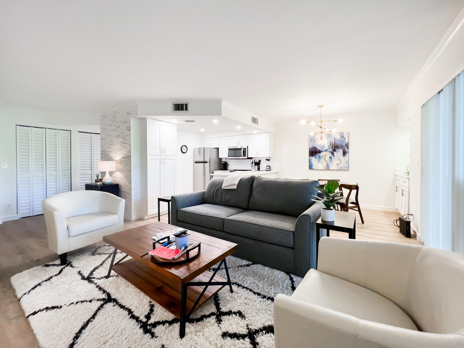 Available season 2027 for $5600/month. Charming newly renovated first floor turnkey furnished condo is available for your enjoyment, located within walking distance to the beach in Jupiter Ocean and Racquet Club. Water/sewer, trash, basic cable and wi-fi are included in rent and electric is capped at $75/month! Queen bed in master and full size pull out couch in living room, washer and dryer inside, no carpet, ample storage. Enjoy a beverage on your private screened-in patio, take a walk or a bike ride to the beach, play tennis or golf, lounge by the pool. Carlin Park, Maltz theater, Riverwalk, Harbourside, numerous restaurants and shops are nearby. Just bring your toothbrush and enjoy your beach home!