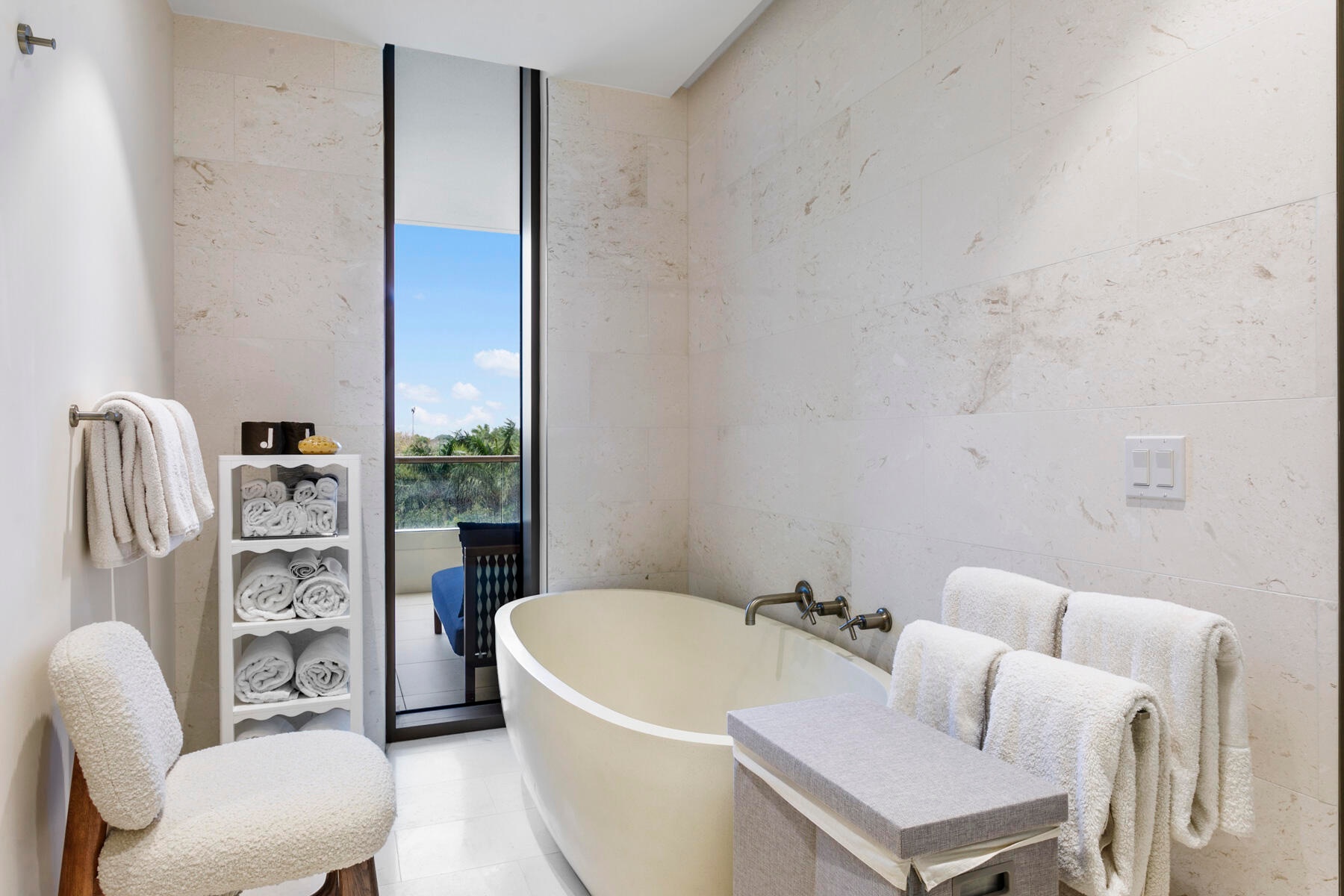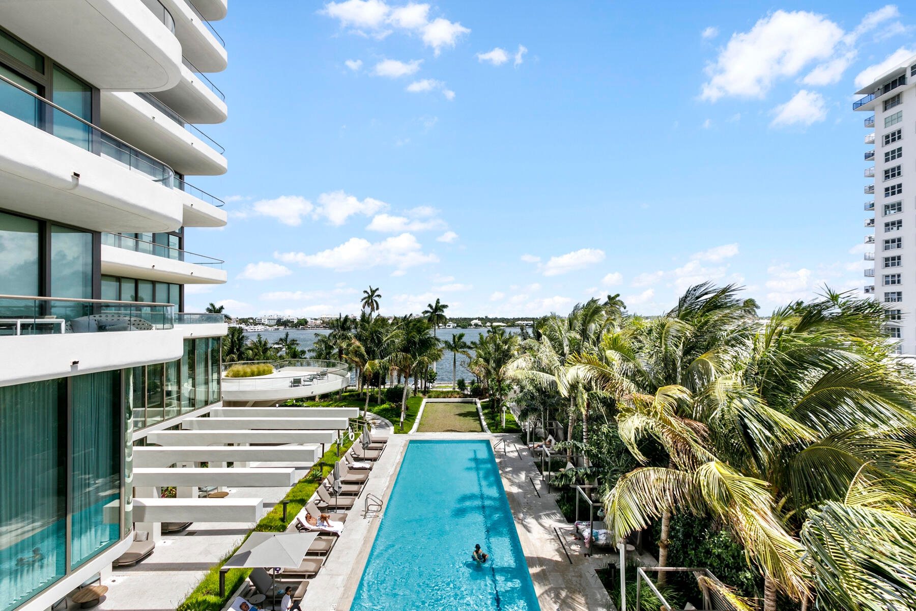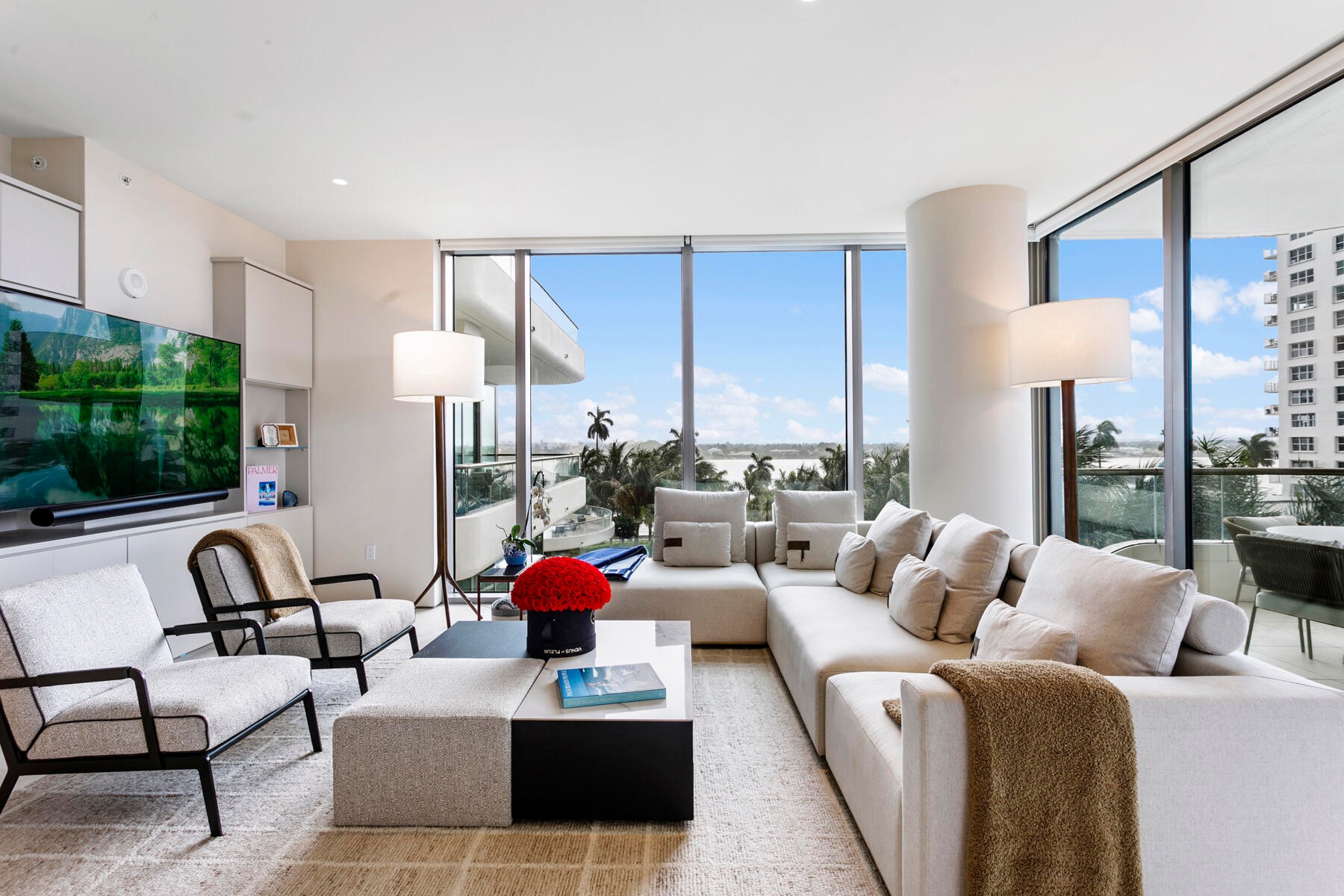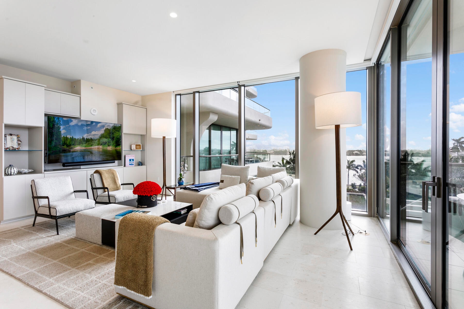 La Clara residence 402 offers a one-of-a-kind oversized floorplan, thus providing the largest format 2 BR / 2.5 BA in the building. Its wraparound balcony is over 800 sqft and accessible from both bedrooms and the living room, providing expansive East, South, and West exposures. Uniquely, 402 is located within the -01 stack, making it a private, end unit with a singular neighbor. All appliances are Bosche, including gas stove. Custom closets and an entertainment center have been built-in. 9' ceilings and electric blinds throughout. Full-sized laundry room with storage. Deeded garage parking for one vehicle plus unlimited valet for guests. Large temperature-controlled storage unit also included... see building details in supplement below. With only 83 residences, the La Clara is a boutique building where every unit has direct Intracoastal views and bright, cheerful natural light. Located on scenic South Flagler Drive in West Palm Beach, across the Royal Park Bridge - equidistant from the bustling downtown city centre of West Palm and the iconic destination of Palm Beach Island. Amenities include fitness center, outdoor pool with towel service, cinema room, wine room, business center, chef's entertaining kitchen, sauna, and spa.