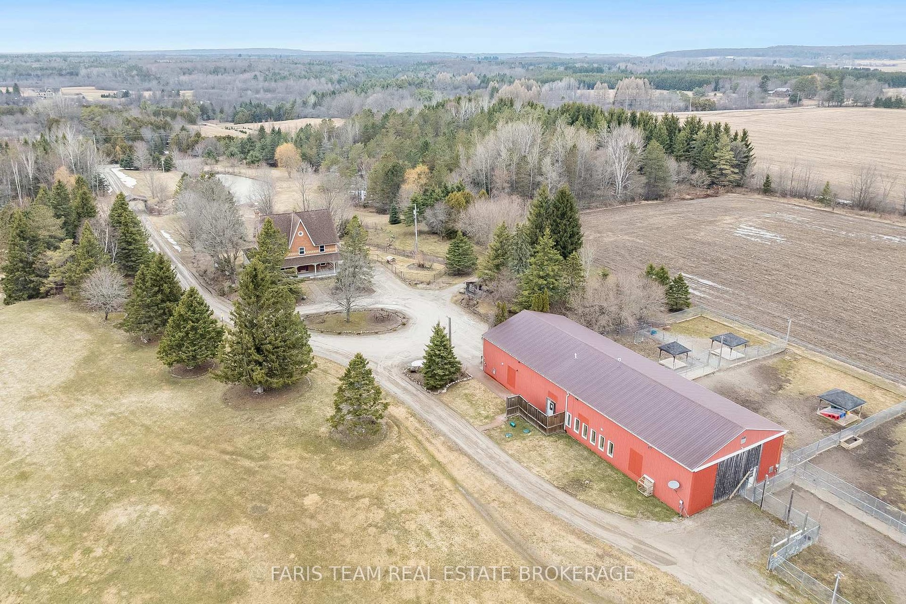 Top 5 Reasons You Will Love This Property: 1) Expansive 44-acre estate offering immediate positive cash flow through a fully established and thriving dog boarding, daycare, grooming, retail, and online business, supported by a loyal client base and strong wholesale accounts already in place 2) Impressive 40'x100' purpose-built commercial facility, fully heated and insulated, meticulously maintained, and thoughtfully designed to support continued growth and the expansion of multiple revenue streams 3) The charming Victorian-style 3-storey residence offers over 3,200 square feet of beautifully finished living space, featuring hardwood flooring throughout, a spacious kitchen, a versatile third level loft, a finished basement, a wraparound porch, a UV water system, and a backup generator for added peace of mind 4) Approximately 22-acres of workable farmland currently leased, providing steady passive income along with potential agricultural tax benefits and long-term appreciation of the land 5) Ideally located just minutes to Midland, Elmvale, and Barrie, this property delivers the perfect mix of peaceful rural living with convenient access to key amenities, markets, and surrounding communities. 3,513 above grade sq.ft. plus a finished basement. *Please note some images have been virtually staged to show the potential of the home.