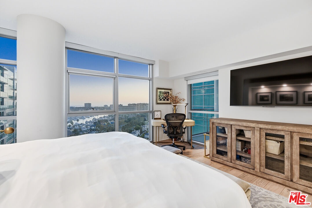Spectacular Marina and Ocean views define this 17th-floor residence at the prestigious Azzurra. Showcasing one of the largest and most sought-after two-bedroom floor plans, this beautifully renovated home spans nearly 1,800 square feet and is perfectly oriented to the West -- capturing breathtaking views, abundant natural light throughout the day, and a remarkable sunsets year-round. Thoughtfully designed for both comfort and entertaining, the open-concept layout features high ceilings, gorgeous hardwood flooring, and expansive living and dining areas that flow seamlessly to an oversized private balcony -- an ideal setting to take in the panoramic coastal views. The chef's kitchen is elegantly appointed with quartz countertops, custom cabinetry, stainless steel appliances, and a generous breakfast bar.Both bedrooms are generously scaled and positioned on opposite ends of the residence, offering ideal separation and privacy. The primary suite enjoys sweeping Marina and Ocean views and is complemented by a spa-inspired en-suite bath with dual vanities, deep soaking tub, separate glass-enclosed shower and more than ample closet space. Additional highlights include custom built-ins throughout the unit, a full-size laundry room with added storage, dual-zone HVAC's, and two-car parking -- delivering both functionality and everyday ease. HOA dues include cable, internet, water, trash, and earthquake insurance, along with access to an unparalleled collection of resort-style amenities: 24-hour valet for guests, full-service front desk and security, rooftop spa and sky lounge, heated pool and spa with private cabanas, media lounge, curated art collection, and expansive indoor/outdoor fitness centers with dedicated yoga and Pilates studio. Ideally located just minutes from world-famous beaches, renowned dining and shopping, scenic bike paths, theaters, dog parks, LAX and much more! This is elevated coastal living at its finest.