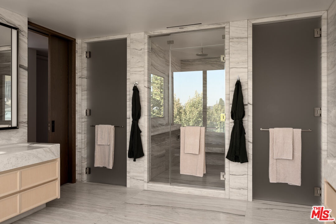 The unveiling of one of the most highly anticipated and uniquely crafted offerings normally unseen in Los Angeles is finally here, after many years of meticulous planning, masterful design, and precise execution: Presenting Rosewood Residences Beverly Hills, a boutique collection of 17 singular luxury homes in an irreplaceable location amidst landmark hotels, internationally acclaimed dining, and the best shopping in the world. Designed in timeless style by critically celebrated Thomas Juul-Hansen, these exceptionally large residences offer unprecedented privacy and generosity of space, an experience enriched by the meticulous, personable service for which Rosewood is renowned. Penthouse E spans a remarkable 5,818 square feet with an additional 2,442-square-foot private rooftop, featuring a 20-foot pool, California room for indoor/outdoor entertaining, fire pit, barbecue, and spectacular vistas of surrounding treetops, high-rises, mountains, and the Hollywood Sign beyond. An elevator leads directly from the four-car garage and into an impressive foyer for receiving guests. Floor-to-ceiling windows welcome natural light into the interior spaces. A secondary service elevator opens into a back-of-house service room with lock-off for culinary preparation, laundry, and deliveries. The kitchen, featuring custom millwork designed by Thomas Juul-Hansen and crafted in Milan by Molteni&C, includes two oversized waterfall islands and state-of-the-art Sub-Zero and Wolf appliances. Those who live at Rosewood Residences Beverly Hills gain access to the rarefied world of Rosewood, whose collection of preeminent hotels and residences includes The Carlyle in New York, Hotel de Crillon in Paris and Las Ventanas al Paraiso in Cabo San Lucas, Mexico. Rosewood is defined by its impeccable and personal approach to service: Associates get to know each resident as an individual, to best cater to their needs and create everyday moments of magic, and Rosewood Residences Beverly Hills is no exception. A full-time concierge and staff of Rosewood-trained professionals includes a dedicated Director of Residences, tasked with curating a life well lived and a high-touch experience unlike any other. At last, a new bar is raised, and the luxury condo market in Los Angeles is forever transformed.