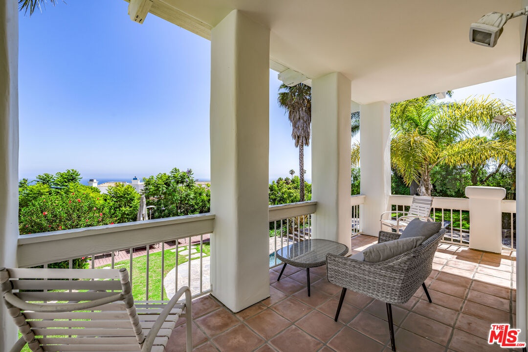 This 6 bedroom pool home with expansive ocean views and within walking distance to the beach, offers Malibu living at its finest. Step into your contemporary Spanish Malibu oasis through a striking, high-ceiling foyer. From here, pass the stylish study area with direct patio access to the cozy main living area with a fireplace and easy access to both a private patio and the pool area. The kitchen is a chef's dream, complete with a central island, a spacious walk-in pantry, and a sunlit breakfast nook that opens directly to the pool area. An adjacent bar connects to the elegant dining room, with double-height ceilings and seamless flow to the pool and BBQ area perfect for both casual gatherings and formal occasions. The main level also hosts a media room that offers a dedicated space for entertainment, a powder room, a fully equipped laundry room, and a guest bedroom with an en-suite bathroom (currently set up as a gym). The upper level is a private retreat featuring a luxurious primary suite with expansive ocean views, a walk-in closet, and a spa-like bathroom with dual enclosed water closets, an oversized shower, a soaking tub, and an electric sauna. A private staircase leads from the primary suite directly to the pool area. The second bedroom boasts a full en-suite bathroom, a private balcony with ocean and pool views, and a walk-in closet. Two additional bedrooms share a central bathroom and a balcony with ocean views. A versatile loft-style bonus room overlooking the dining room can be set up as a library, a game room, a study, an atelier or whatever you imagine of this space. Outside, immerse yourself in Malibu's natural beauty with a pool, hot tub, an oversized deck, BBQ area, and ample space for outdoor dining and lounging. This home has everything you need to fully enjoy the Malibu lifestyle, blending spacious elegance with a layout designed for relaxation and entertaining. Conveniently located in Central Malibu, minutes away from Latigo Beach one of the best surfing spots in Malibu, Escondido Falls, Paradise Cove, Point Dume, and many other well-known Malibu nature spots. A short drive to both Malibu and Trancas Country Mart for shopping, groceries, and activities. Available for lease at $39,500.00 PCM