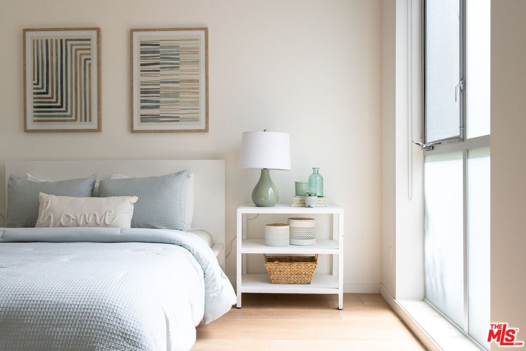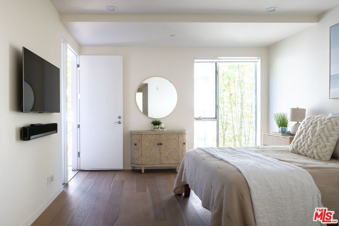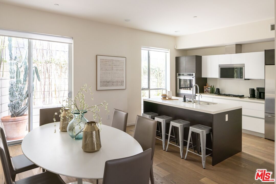 Set within an award-winning six-residence enclave by acclaimed architect Lorcan O'Herlihy, recipient of the 2025 AIA Lifetime Achievement Award. This sophisticated two-story, 2-bedroom, 2.5-bath residence with a dedicated OFFICE NOOK offers the privacy and feel of a single-family home. Bathed in natural light, the open-concept living space is defined by soaring 9-foot ceilings and floor-to-ceiling windows. Elevated finishes include wide-plank wood flooring, custom European Wenge cabinetry, Caesarstone surfaces, and a suite of premium appliances by KitchenAid, Fisher & Paykel, and Miele. An integrated surround sound system adds a refined touch for the discerning audiophile. Just off the kitchen, a private deeded patio provides an inviting setting for morning coffee or tea. Upstairs, two generously scaled bedroom suites each feature their own contemporary bath and expansive walk-in closet, with the primary suite further distinguished by a private balcony. A thoughtfully positioned office/reading nook separates the bedrooms, offering both functionality and privacy. Additional amenities include deeded parking for 2 cars in a secure, gated subterranean garage with dedicated bike storage. The property is professionally managed and benefits from regular maintenance, including weekly custodian and gardening services. Ideally situated in the residential Miracle Mile neighborhood, this home is walkable to an array of coffee shops, dining, boutique gyms and grocery stores (Lassen's, Republique, Met Her at a Bar restaurant group, Equinox, and more), as well as, cultural destinations including LACMA and the Petersen Automotive Museum. Just minutes from Beverly Hills, Culver City, Downtown LA, West Hollywood, and Hollywood. The forthcoming Purple Line Metro station at Wilshire and La Brea is slated for completion in Spring 2026. HOA Fee includes: EARTHQUAKE/building/HOA insurance, management company, reserve contribution, all water, trash, common area electricity, weekly custodian service, weekly gardener service, pest control, and fire alarm/sprinkler monitoring.