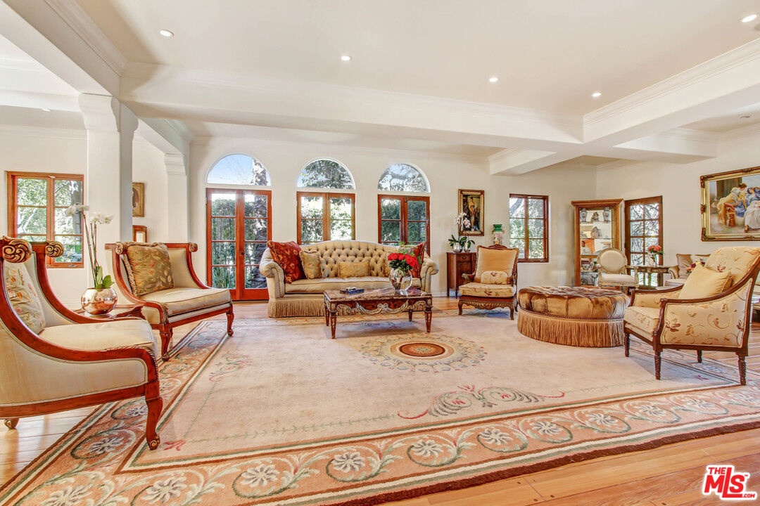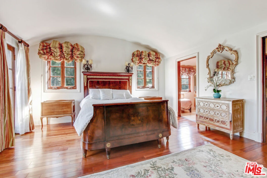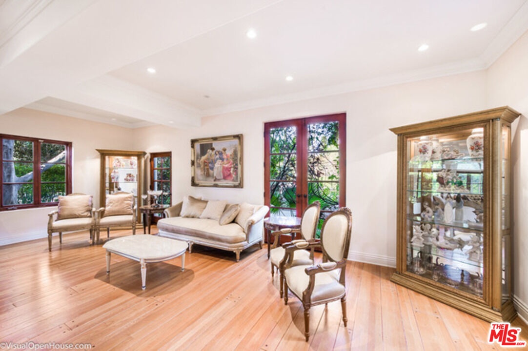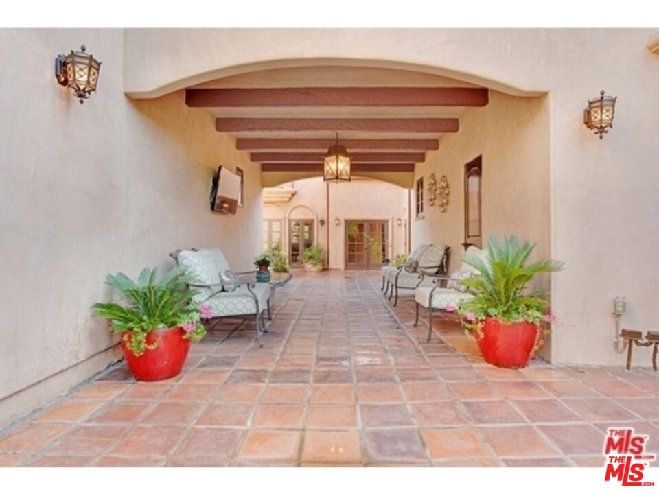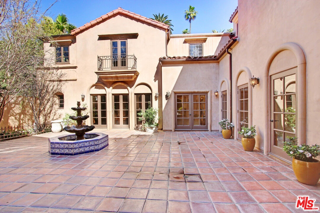 Available A Private Oasis, reimagined in 2007 . This gated, Sun filled Beverly Hills compound is gracefully sited on the corner lot (almost half an acre), hidden behind elegant wrought -iron estate fencing. Masterfully designed landscaping throughout the property feature mature flowering trees and hedges with evergreen foliage that create a lush and exotic privacy. Formerly Shirley Temple's childhood home, this sophisticated villa is comprised of 2 houses. The main house (apx 8,900 sqft) offers 5 bed suites and 8.5 baths. Seamlessly flowing floor plan combines indoor and outdoor spaces, making it the perfect environment for entertaining and lounging. The basement features a bowling alley and is perfect space for games and Billiard. Privately tucked away guest-house built 2014, is completely secluded with its own entrance, driveway and parking for 4. It boasts apx 1,500 sqft with 3 Bedrooms & 2.5 Bath, full kitchen and a living room. Unforgettable home that provides luxury, tranquility and complete privacy.