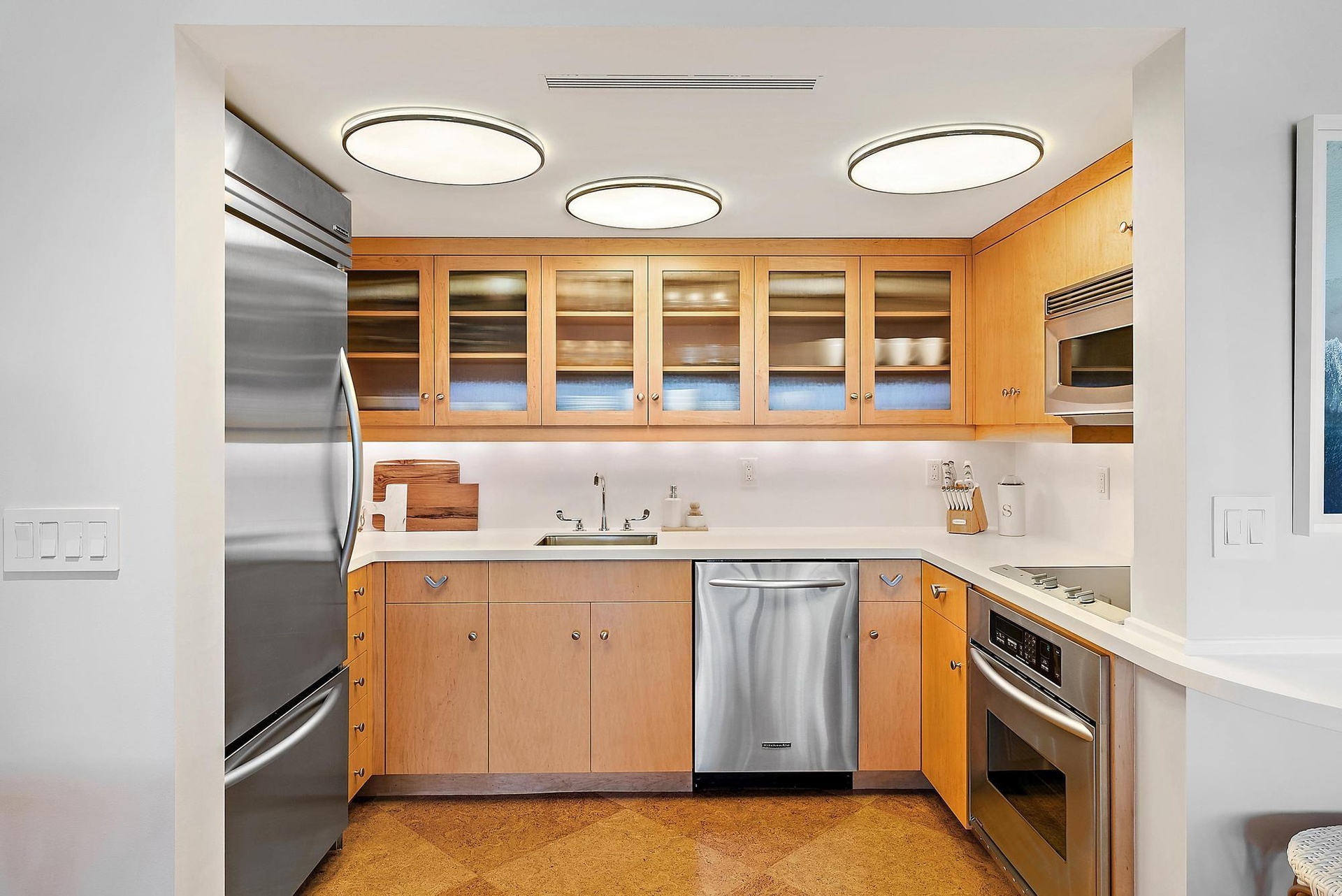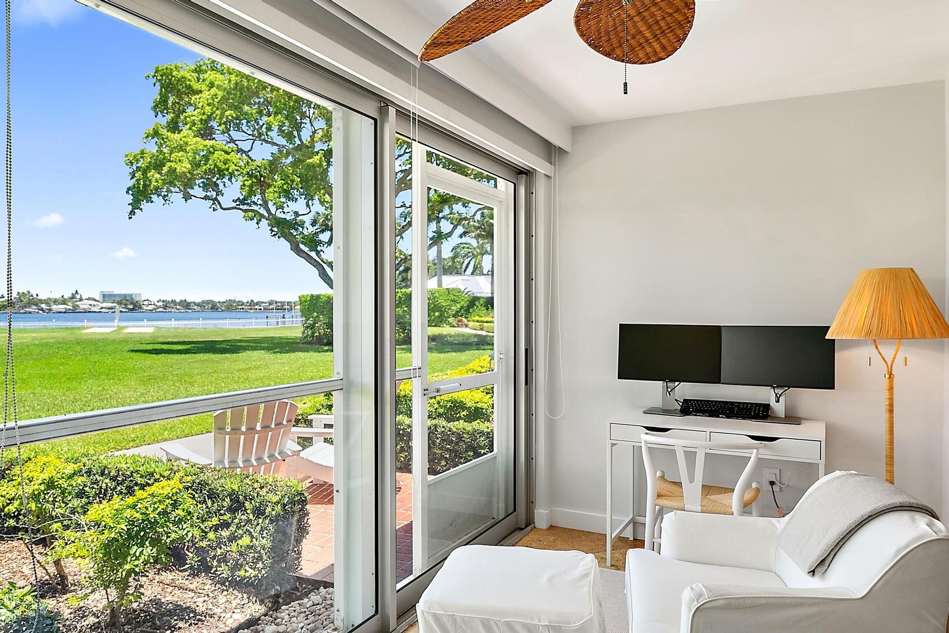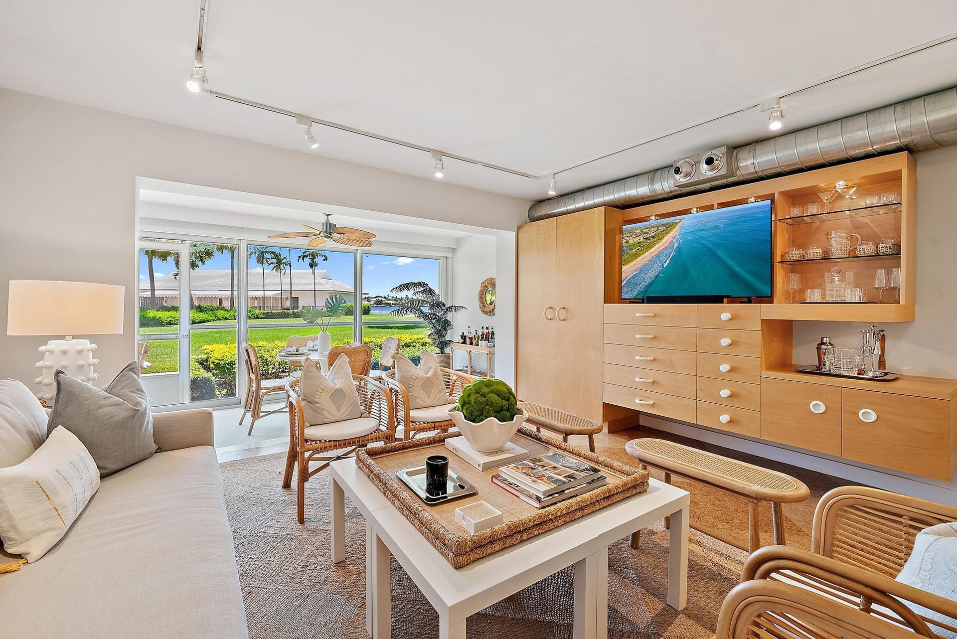 Charming Waterfront Retreat in Lost Tree Village Located in one of the most sought-after waterfront enclaves, this beautifully styled residence offers effortless living with a bright, coastal ambiance and direct views of Little Lake Worth and manicured grounds. The open living and dining areas are framed by floor-to-ceiling glass, inviting in natural light and showcasing tropical landscaping and sparkling water beyond. The updated kitchen features stainless steel appliances, light wood cabinetry with glass inlays, and a breakfast bar that seamlessly flows into the living space—perfect for entertaining or enjoying a quiet morning at home. Tasteful finishes and thoughtful design details bring a modern coastal flair while maintaining a warm, welcoming tone throughout. Step outside your patio and enjoy the peaceful setting, just steps from the water, gym, and clubhouse this makes for an ideal location in the Village. Whether you're savoring the sunset, strolling the lush grounds, or taking advantage of the nearby amenities, this move-in-ready suite offers the ideal blend of comfort, style, and location within the prestigious Lost Tree Village community.