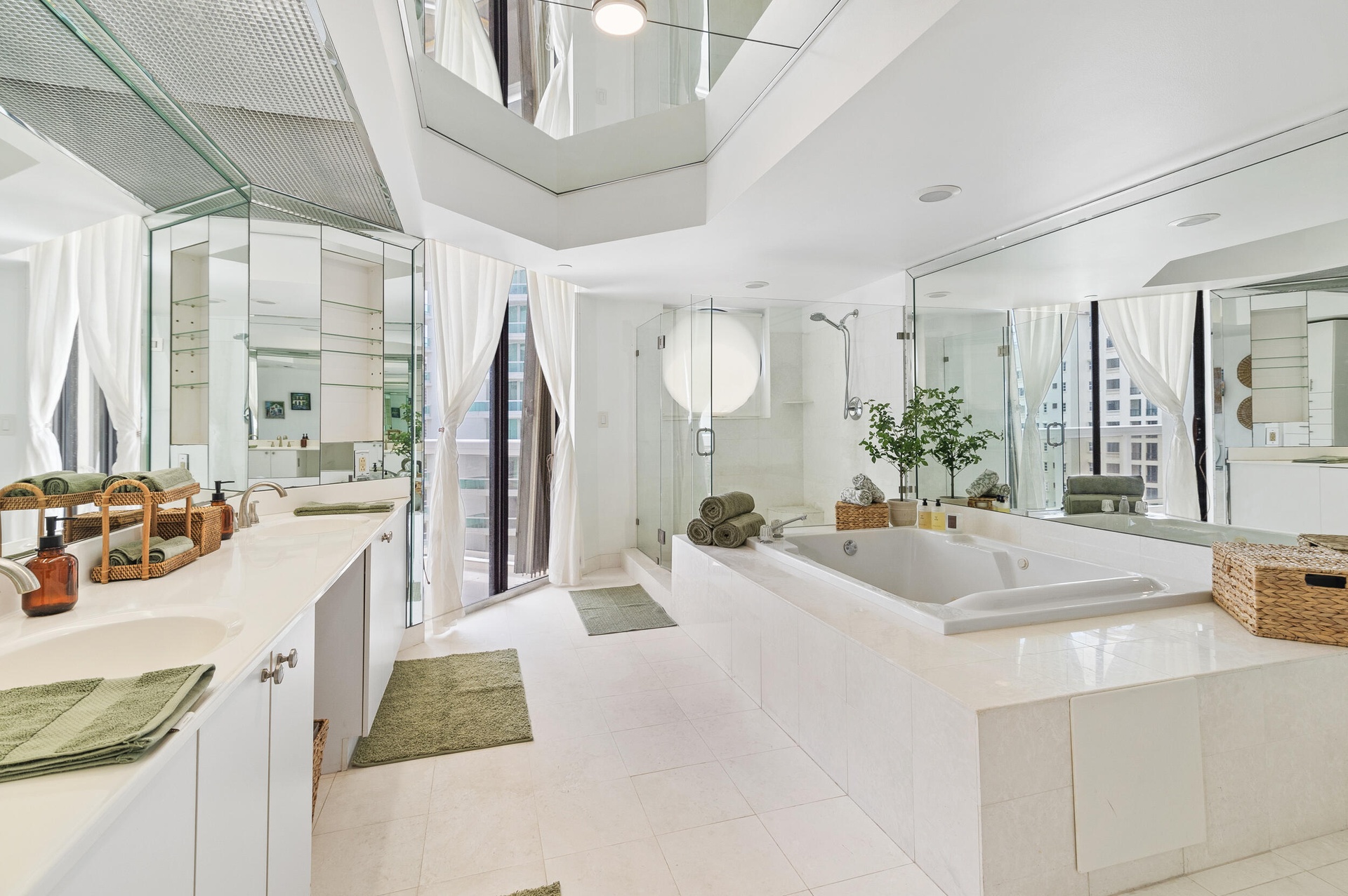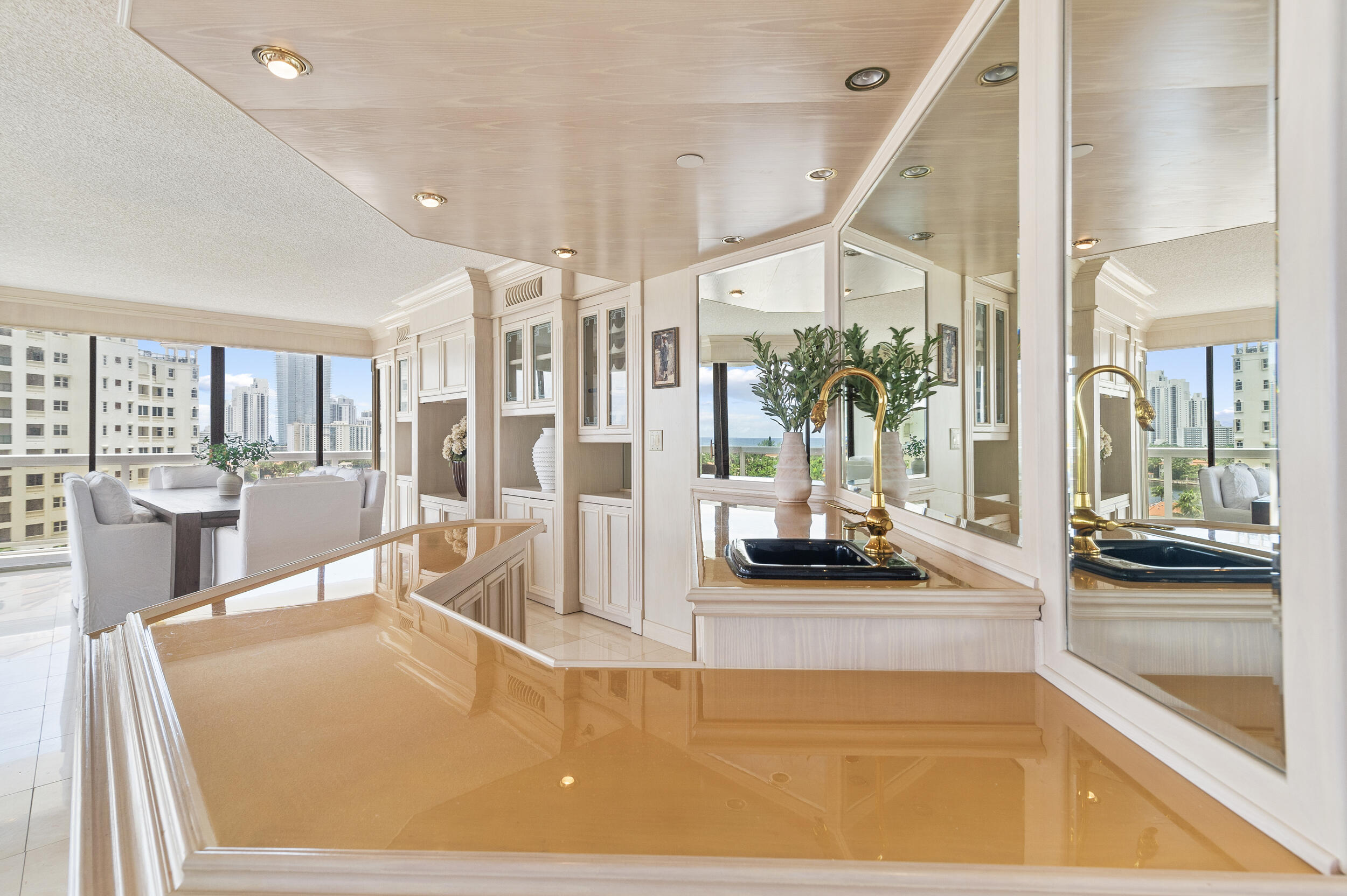 This unique residence features a 3,000+ sq. ft. open floor plan, encompassing 3 bedrooms, 2.5 bath, plus an 800+ sq. ft. wrap-around balcony, boasting magnificent Easterly views of the Ocean, Intracoastal, Golden Beach, and City and Golf Course views. The primary bedroom is situated separately on the Southeast side of the residence and offers a large sitting area with balcony access. The primary bath offers a separate jetted tub and shower with the vanity offering dual sinks. The 2nd & 3rd bedrooms share a bath. There is a powder room bath off foyer for guests. 3 parking spaces side-by-side in the 1st floor parking garage. The Landmark offers many amenities, including 24-hour security, tennis, heated pool & spa, fitness room, & more. Close to airport, beach, fine dining and much more!