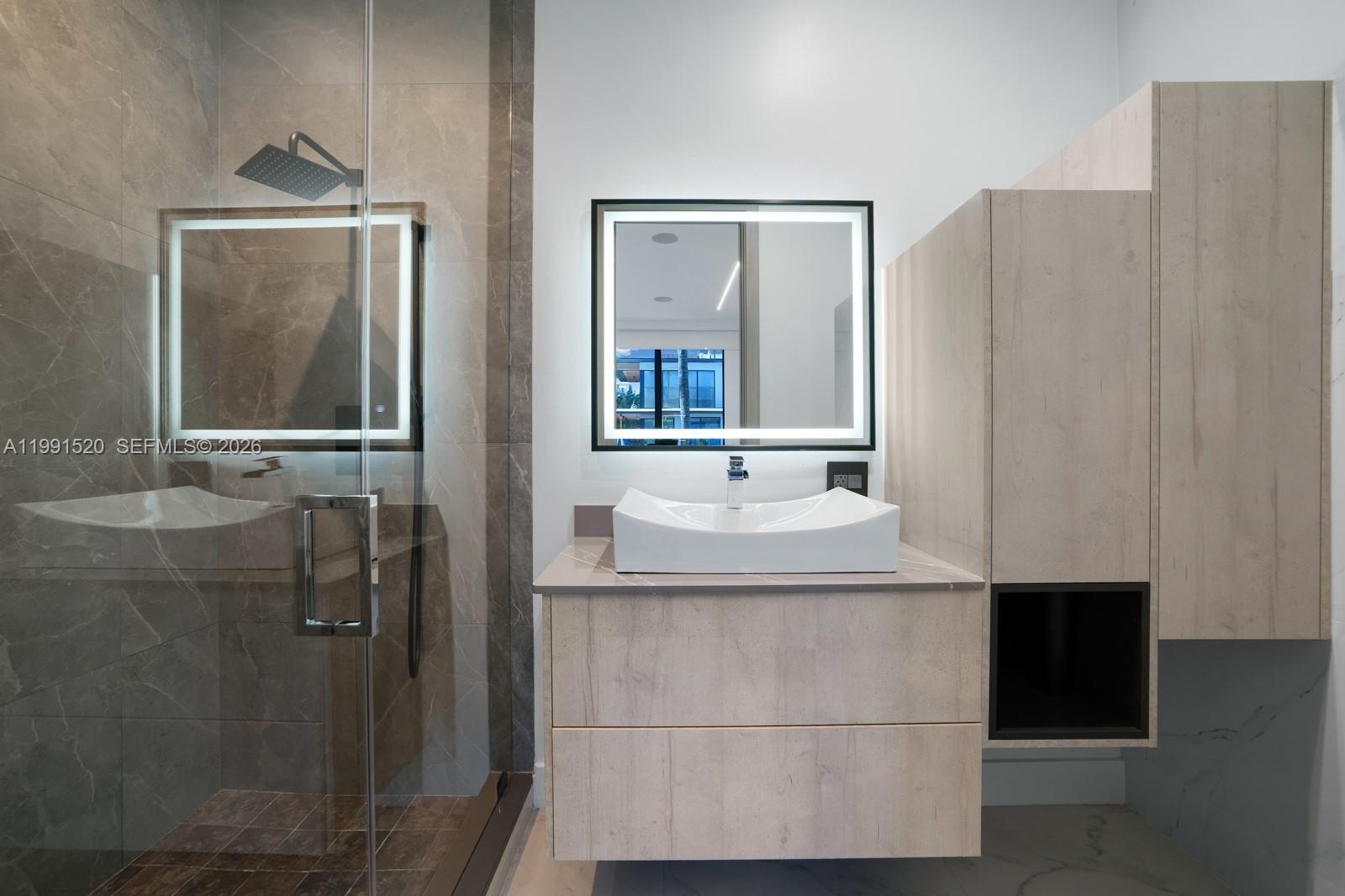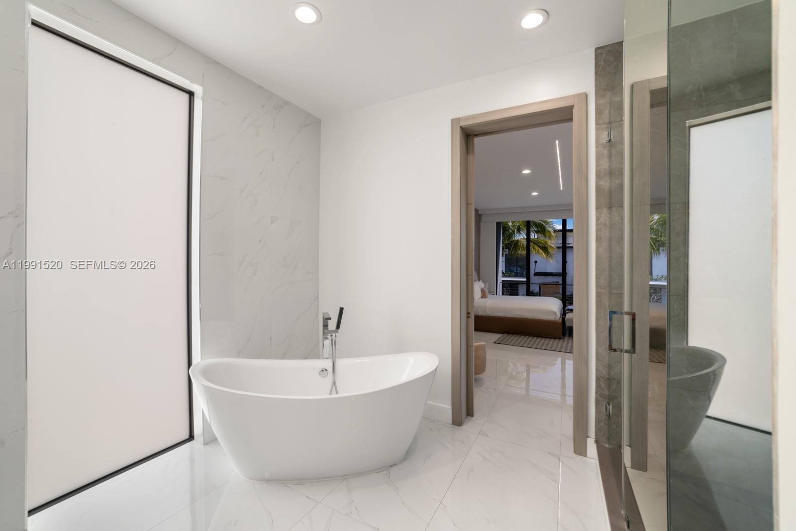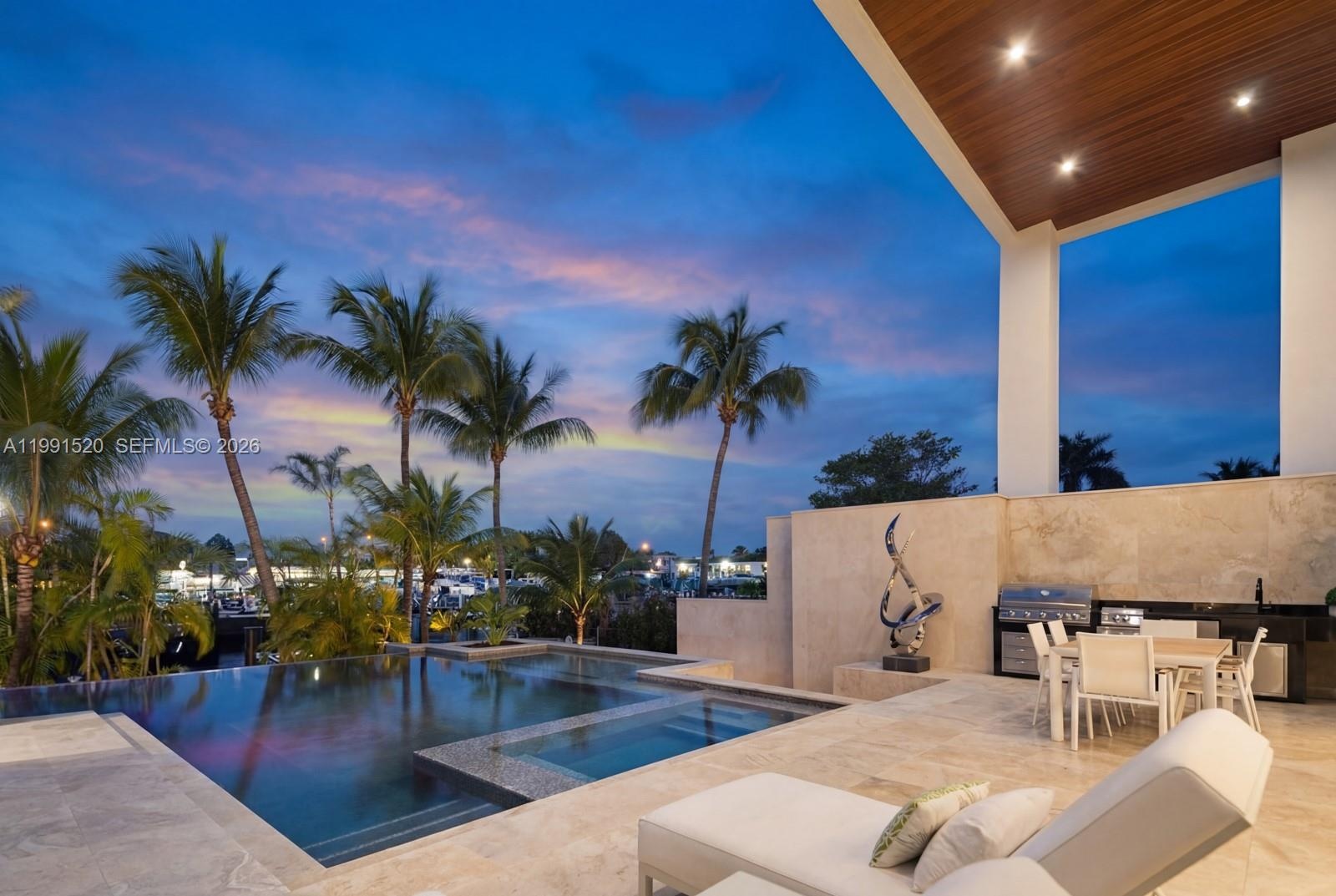 Experience elevated luxury in this newly built gated waterfront estate, nestled within the prestigious 24/7 guard-patrolled community of Belle Meade. Quietly positioned on a generous 10,710 SF lot, this smart home offers 6 bedrooms and 6.5 bathrooms across 6,902 SF of refined interior living space, thoughtfully designed for comfort and tranquility. A striking pivot door welcomes you into a dramatic 21-foot foyer, revealing expansive interiors with 11-foot ceilings and sleek modern finishes throughout. The main living areas flow seamlessly, anchored by a custom kitchen outfitted with Wolf and Sub-Zero appliances, elegant cabinetry, and a spacious walk-in pantry—perfect for both everyday living and entertaining. Designed for year-round enjoyment, the outdoor spaces feature a heated pool, fully equipped summer kitchen, and covered lounge areas surrounded by lush tropical landscaping. With 70 feet of private dockage and direct access to Biscayne Bay with no fixed bridges, this property is ideal for boating enthusiasts. Blending privacy with contemporary design, this exceptional waterfront residence offers effortless sophistication just minutes from Miami’s Design District, beaches, and downtown—truly a modern coastal masterpiece.