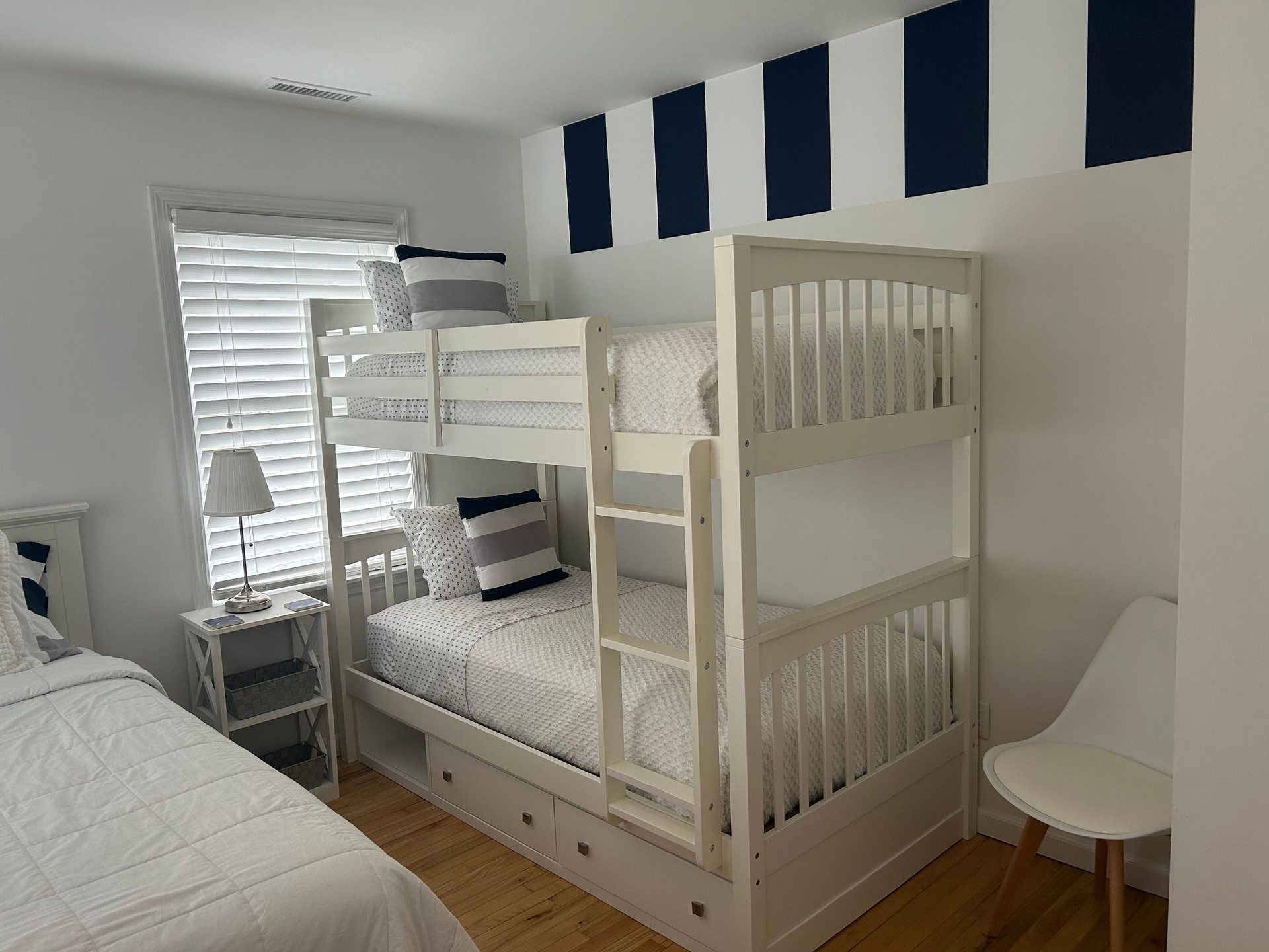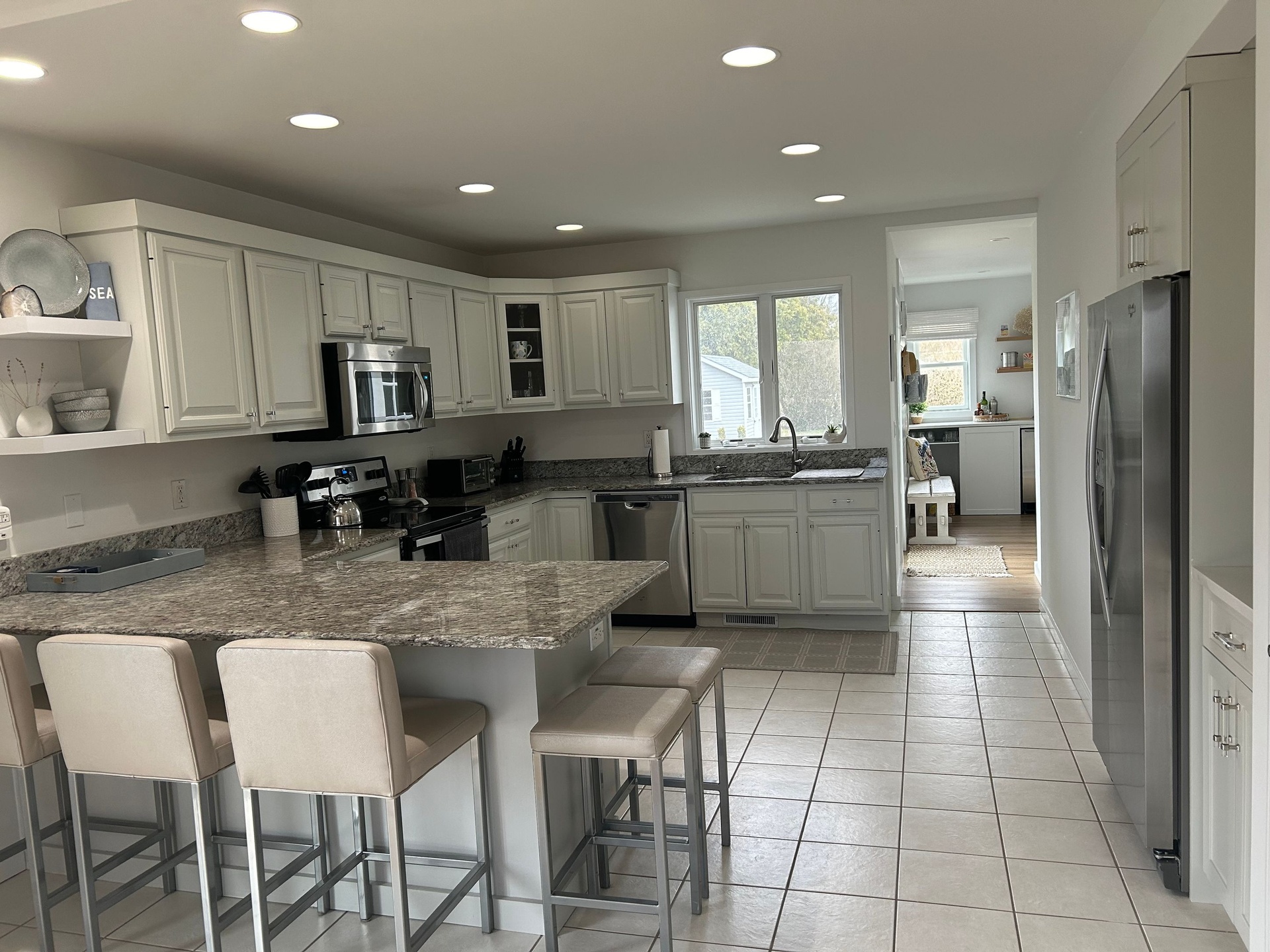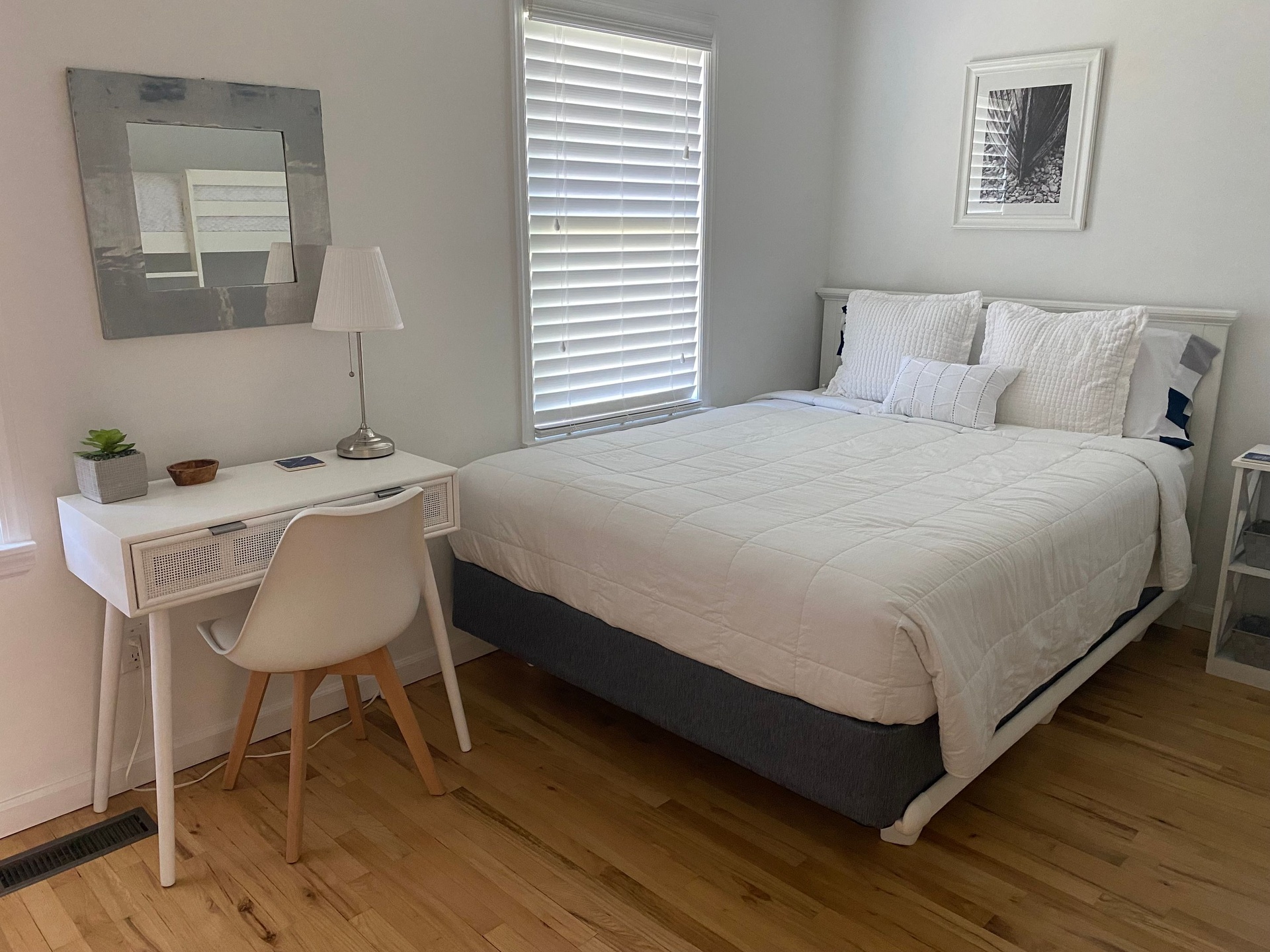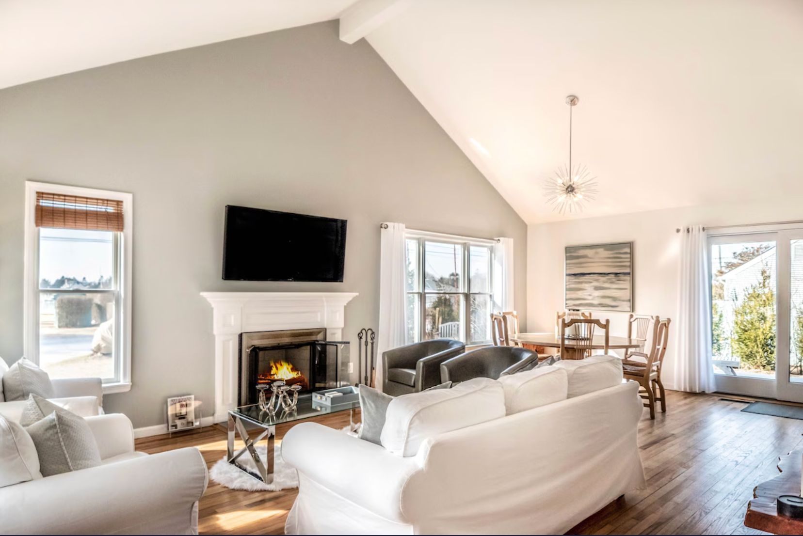 Step outside to a beautifully landscaped yard complete with a pool, outdoor shower, and barbecue, perfect for summer entertaining. Additional amenities include bikes and beach chairs, as well as easy bay access for kayaking just across the street.