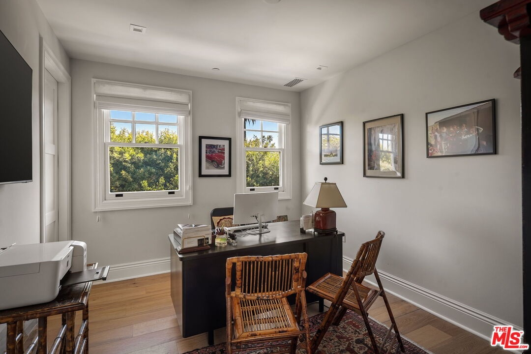 With a truly irreplaceable ocean view, landmark designation, and an extraordinary Mills Act property tax reduction, 401 Ocean presents a rare opportunity to own a piece of Santa Monica's coastal legacy. Rich in local history, this Craftsman-style residence was originally built in 1910 by renowned architect Robert Farquhar and thoughtfully restored and modernized in 2021. As a designated historic landmark, the home benefits from an active and transferable Mills Act contract, offering a significant property tax reduction of up to approximately 80% -- an exceptional advantage in today's market. One of only two townhouse-style residences, the home lives with the privacy and presence of a single-family retreat, complete with a private entrance, side yard, multiple terraces, a two-car garage, and integrated home automation with surround sound throughout. Set just beyond the bluff, unobstructed views of the Pacific Ocean and Santa Monica Mountains unfold across the main and upper levels, all just moments from the beach, promenade, and pier. Inside, radiant natural light pours through expansive windows, illuminating exquisite millwork, wide-plank white oak floors, and refined modern finishes that elevate the home's timeless coastal character. The open-concept main level flows effortlessly from a sophisticated living room to an airy dining space and out to a private, hedge-lined terrace, the ideal setting for relaxed mornings or evenings dining al fresco. At the heart of the home, the gourmet kitchen is as beautiful as it is functional, featuring custom Axis cabinetry, a substantial seated island, premium built-in appliances including temperature-controlled wine storage, and a generous butler's pantry with wet bar. A charming powder room, laundry room, and bedroom suite complete the main floor. Upstairs, three additional bedroom suites await, including one with access to the upper terrace and the impressive primary suite. Positioned at the front of the home beneath soaring vaulted ceilings, the primary offers an awe-inspiring ocean-front vantage, a private balcony, expansive walk-in closet, and a spa-like en-suite bath with gas fireplace, dual vanity, soaking tub, and glass-enclosed shower. The lower level reveals an expansive brick-lined family room and full bathroom, ideal for a media lounge, gym, playroom, or private studio. Supremely located in the heart of Santa Monica with effortless access to world-class dining, boutiques, and Westside amenities, 401 Ocean is a one-of-a-kind heritage residence that honors California's past while defining the future of luxury coastal living.
