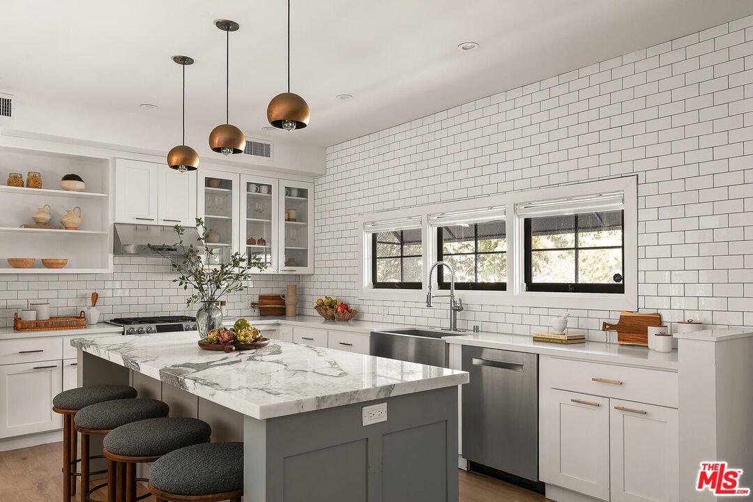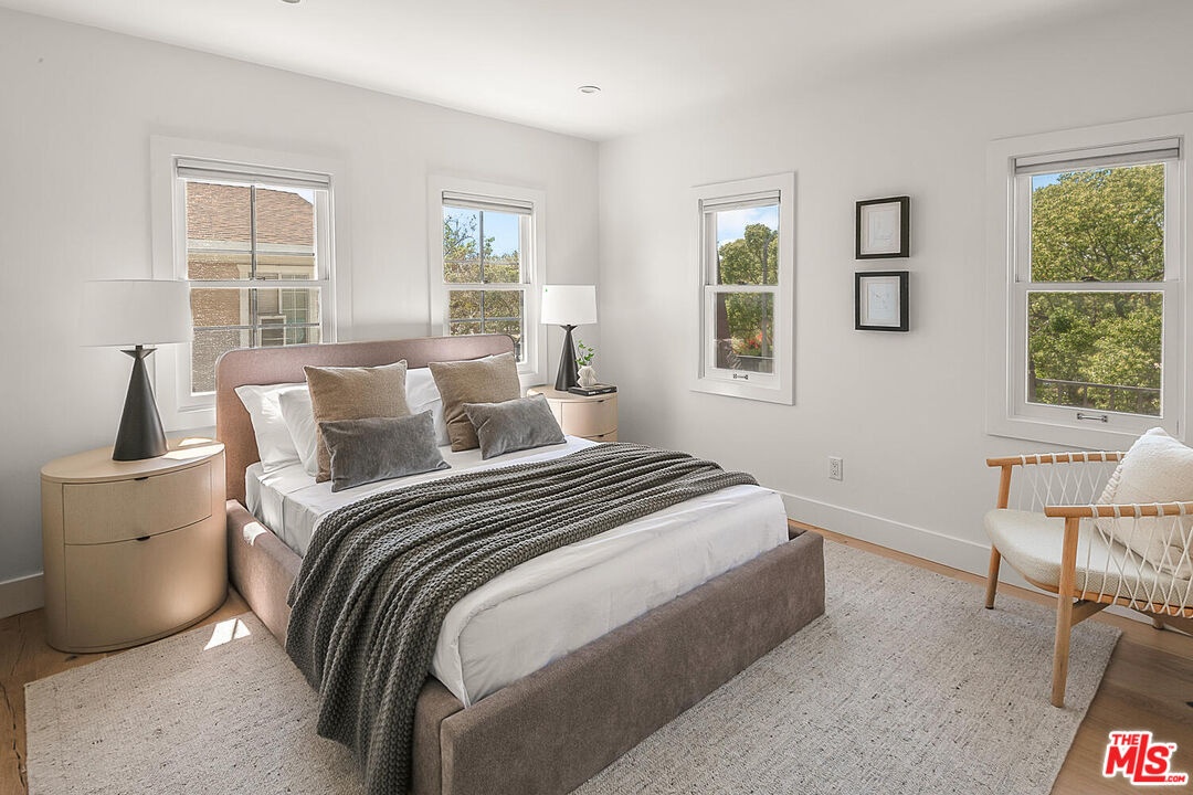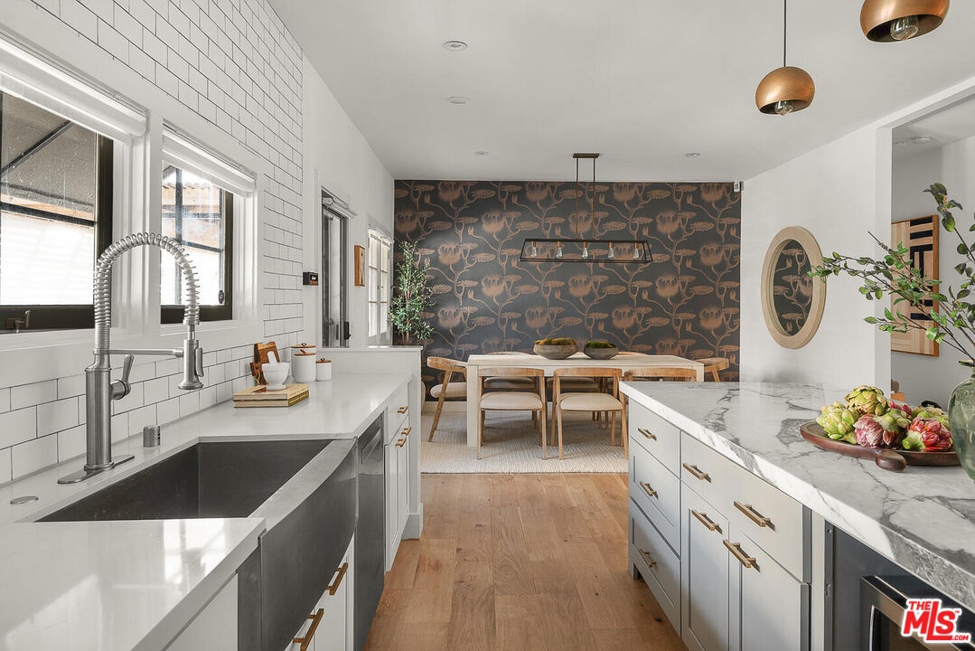 Stunningly remodeled historic Dutch Colonial home located in the Wilshire Park HPOZ. Lovingly restored in 2015, this special residence retains its original 1920's character while also featuring today's modern amenities, providing for the best of both worlds. Situated on a spacious corner lot, this sun drenched home is highlighted by an open floor plan encompassing the oversized living room, kitchen, and cozy dining room, creating a functional flow. The striking chef's kitchen includes stainless steel appliances, custom cabinetry, and an oversized natural stone island, perfect for entertaining. High ceilings and beautifully restored wooden windows stream natural light into the first floor of the home, which also features a downstairs suite and a flexible living space that could function as a bedroom, office, gym, or playroom. Upstairs leads to the picture perfect bedroom level, which includes two bright, south facing guest rooms sharing a well appointed bathroom, a laundry area, and of course the sumptuous primary suite. With elevated ceilings, a huge private balcony, a walk in closet, and a spacious ensuite bathroom, this retreat is a dream come true. The generously-sized backyard is both flexible and functional. Relax by the massive pool, enjoy alfresco dining on the patio, or use the driveway and two car garage to house your car collection. A potential poolhouse, cabana, or two story ADU awaits as a possibility for any buyer looking to add value or additional space.This uncommon residence is a unique opportunity, make sure it doesn't pass you by!