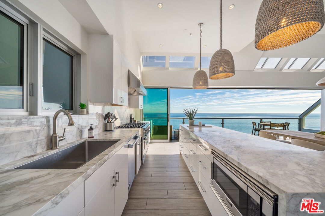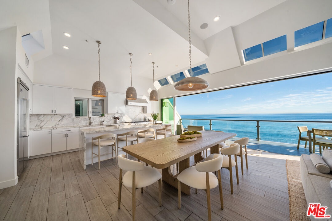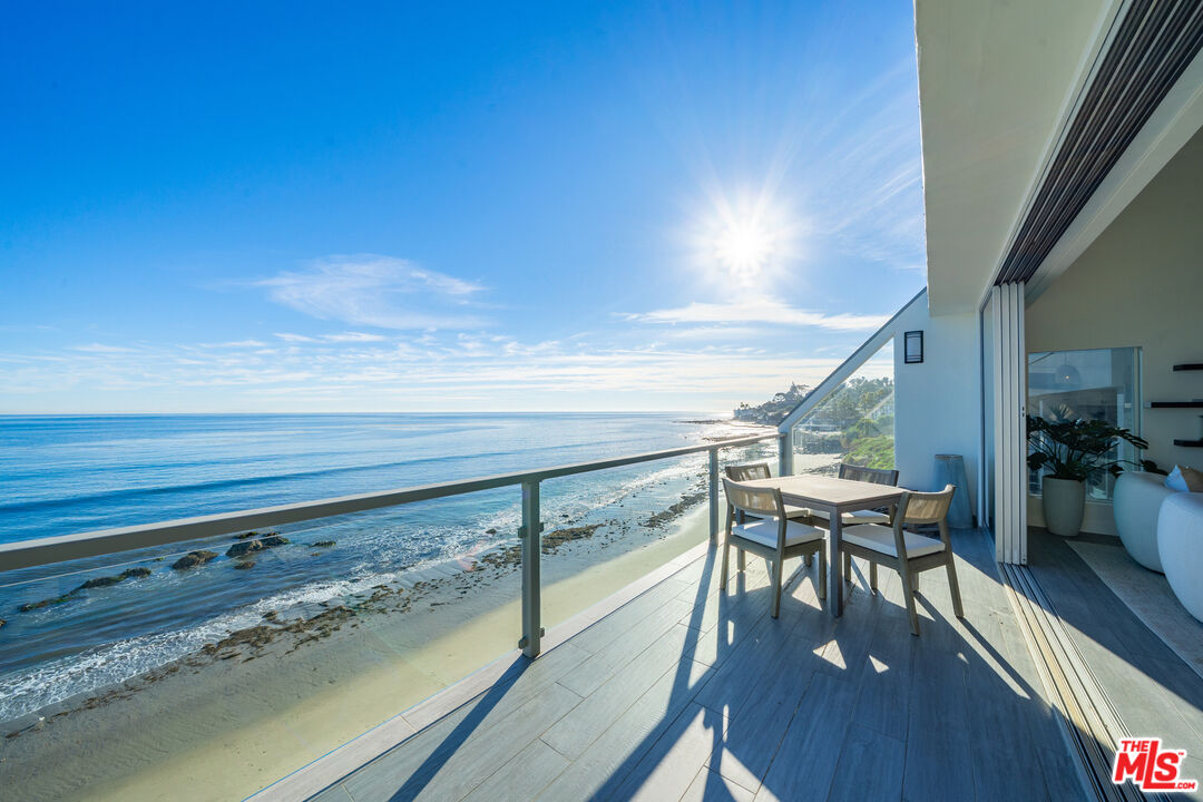 Nestled along the pristine shoreline of central Malibu, this newly remodeled contemporary beach house at 26508 Latigo Shore Drive offers an unparalleled fusion of effortless elegance and oceanfront living. Every room in this exquisite 3-bedroom, 3.5-bath residence enjoys direct beachfront views, creating a seamless connection to the Pacific. Spanning nearly 3,000 square feet (with an additional two-car direct-access garage), the home feels remarkably spacious and airy thanks to soaring ceilings, walls of glass, and abundant natural light that floods the open-concept living spaces. Three thoughtfully positioned decks extend the living area outdoors one providing private, direct access to one of Malibu's deepest and driest stretches of sand. The expansive ocean-view deck, complete with a spa, heat lamps, and generous seating, is ideal for intimate gatherings or sophisticated entertaining against the backdrop of the sea. The interiors reflect a refined balance of form and function, highlighted by a modern kitchen with sweeping ocean views. Additional highlights include abundant parking on a private road (including four dedicated spaces), and effortless access to miles of pristine beach, world-class surfing at the nearby point, and serene tide pools at low tide. This exceptional property delivers a rare combination of architectural sophistication, uncompromising luxury, and the ultimate Malibu beach lifestyle.