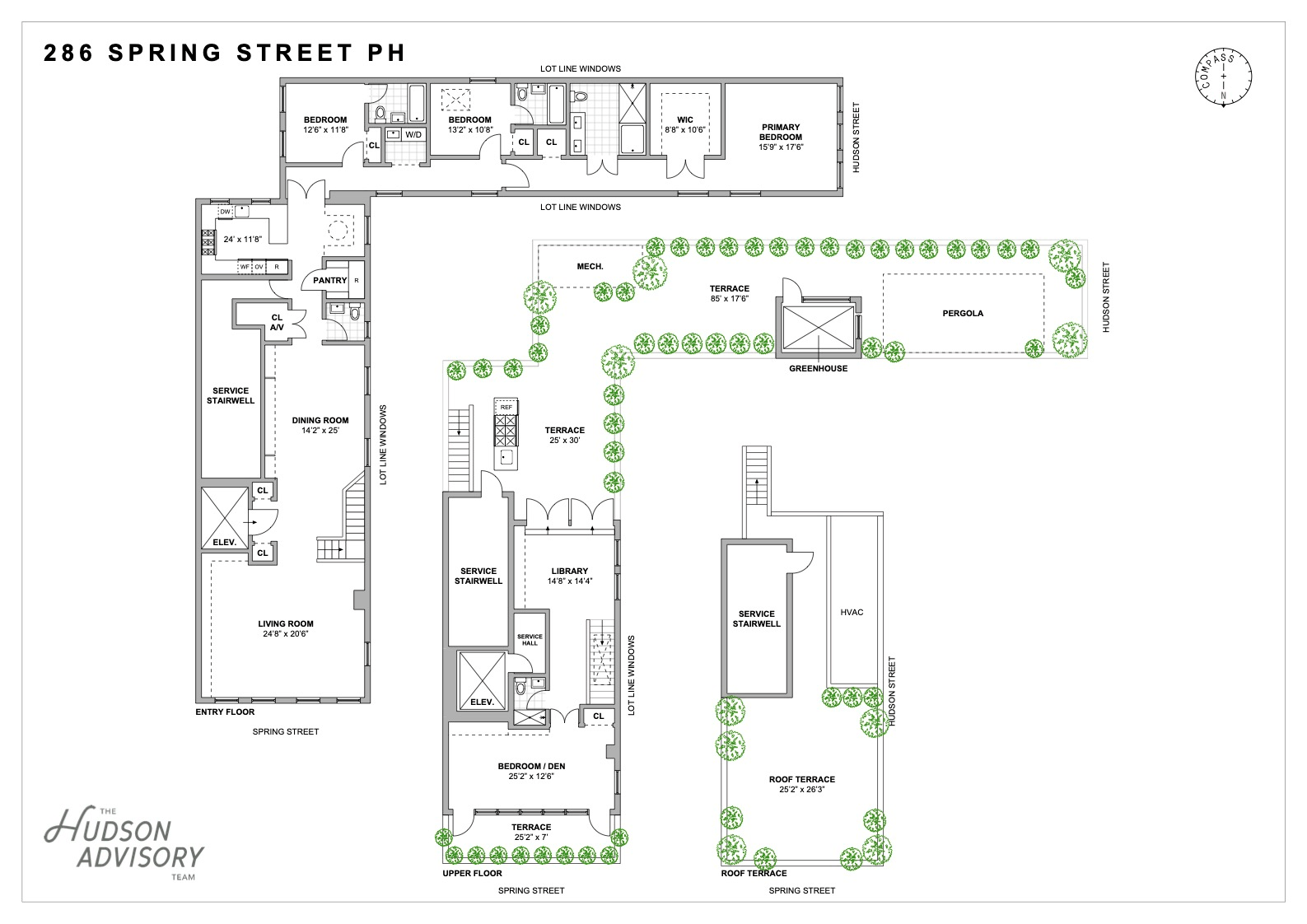 Expansive, 4 Bedroom 4. 5 Bathroom Hudson Square duplex penthouse with just over 4, 700 interior sqft and 2, 600 sqft of private outdoor space.