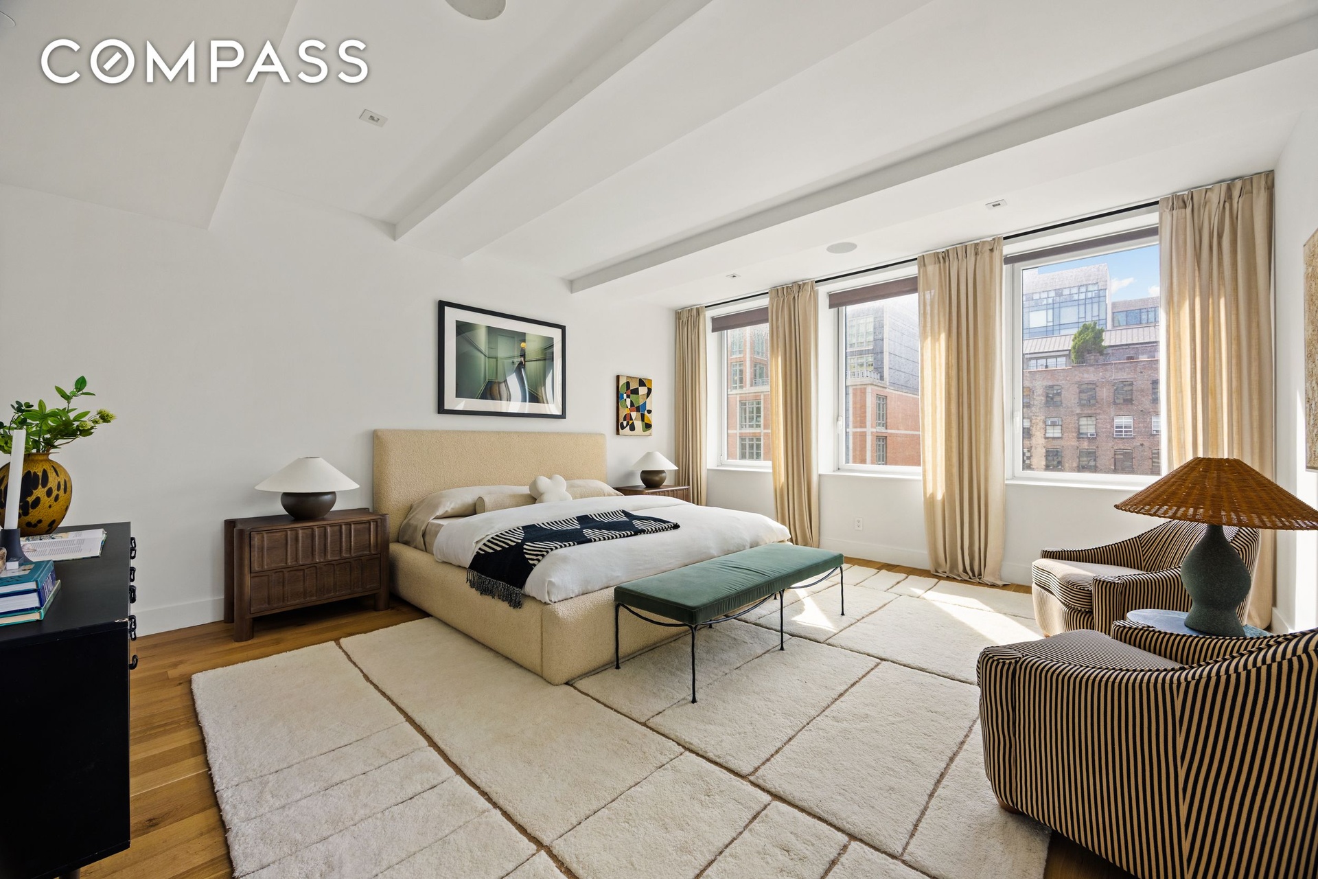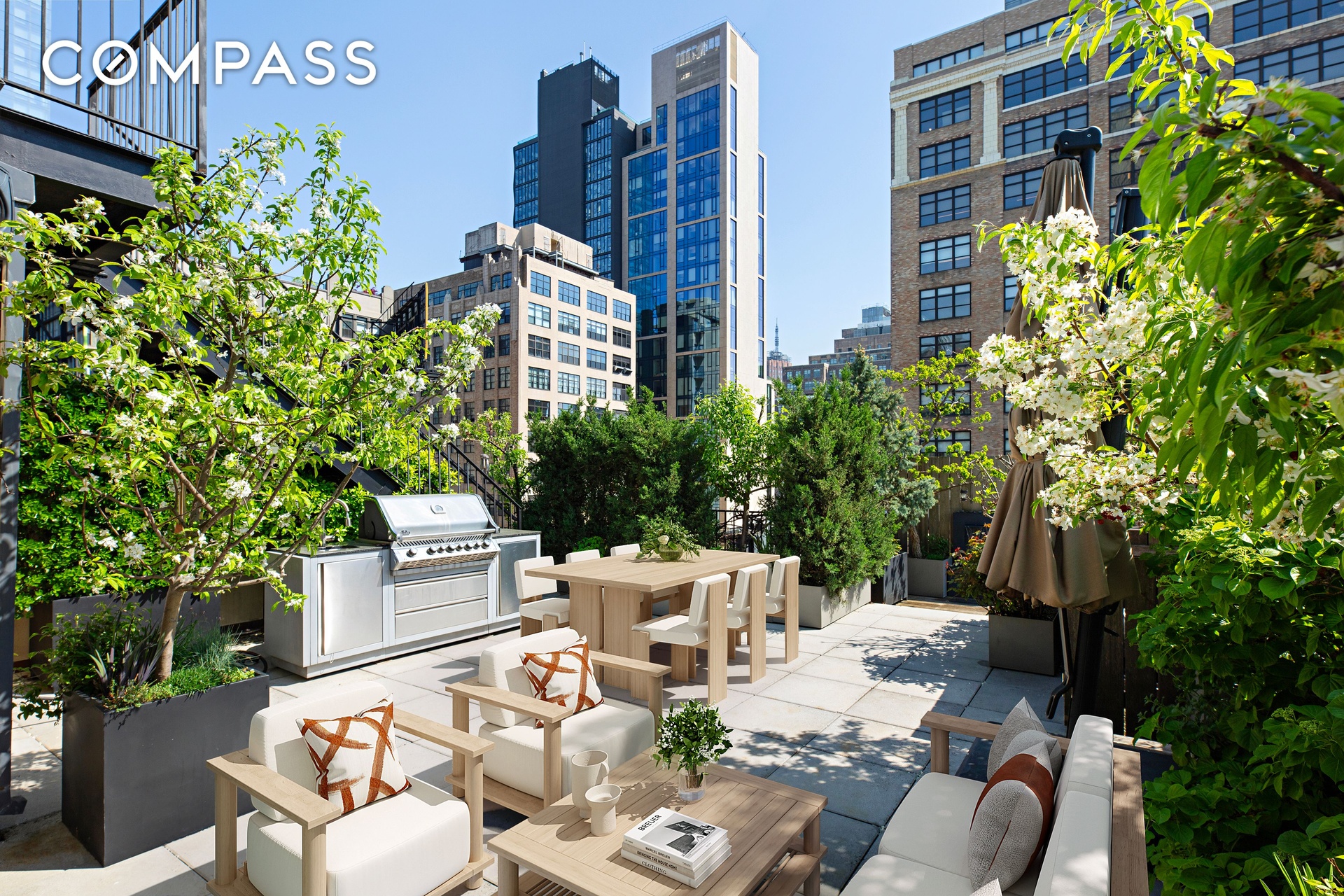 Expansive, 4 Bedroom / 4.5 Bathroom Hudson Square duplex penthouse with just over 4,700 interior sqft and ~2,600 sqft of private outdoor space. This discreet, renovated loft condominium has four exposures, unparalleled natural light, high ceilings and low carrying costs.