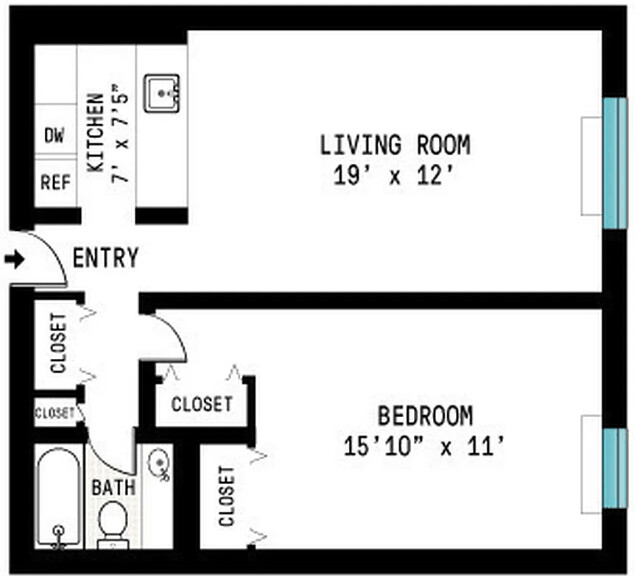 A wonderful place to call home, this spacious one bedroom apartment has a pass-through kitchen, large living room, king sized bedroom, marble bathroom, and three closets throughout.