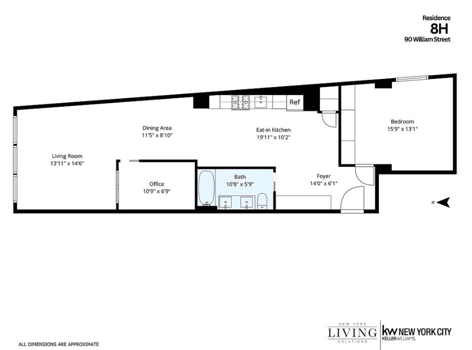 90 William Street is a full-service condominium offering a full-time doorman, concierge, fitness center, resident lounge, storage, and a beautifully landscaped rooftop terrace with sweeping city views.