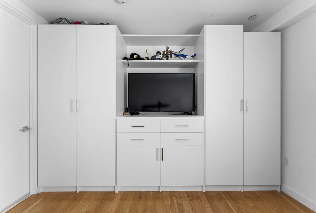 Recently added floor-to-ceiling built-ins in both the entryway and bedroom provide exceptional storage throughout the home. Additional features include central air conditioning, and recently updated recessed lighting. The building permits owners to install an in-unit washer/dryer for the ultimate convenience.