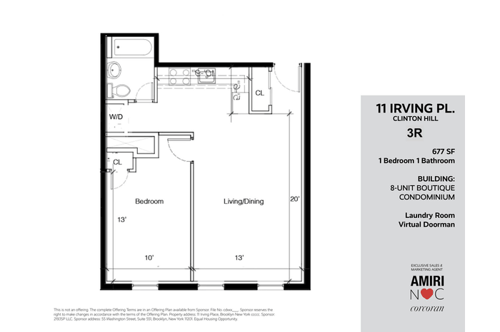 This is not an offering. The complete Offering Terms are in an Offering Plan available from Sponsor. File No. CD05-0566. Sponsor reserves the right to make changes in accordance with the terms of the Offering Plan. Property address: 11 Irving Place, Brooklyn New York 11238. Sponsor: IRVING 11, LLC. Sponsor address: 14 Bond Street, Suite 126 Great Neck, NY 11021. Equal Housing Opportunity.