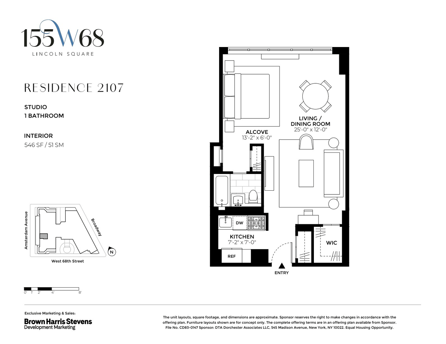 Exclusive Sales and Marketing Agent: Brown Harris Stevens Development Marketing. The complete offering terms are available in an offering plan from Sponsor. File CD83-0147 Sponsor: DTA Dorchester Associates LLC, 545 Madison Avenue, New York, NY 10022. Property Address: 155 West 68th Street, New York, New York 10023. Equal Housing Opportunity.