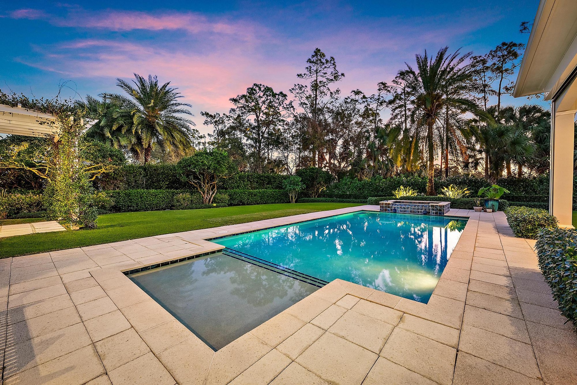 Welcome to 12900 Hammock Crossing, a stunning retreat nestled in the heart of Palm Beach Gardens. This exquisite 4 bed/5.5 bath property is a harmonious blend of timeless elegance and modern luxury, offering a lifestyle that's second to none.Situated in the exclusive gated community of Old Marsh Golf Club and located on the Par 3 16th hole, this residence boasts unparalleled privacy. The home features an expansive, open-concept layout perfect for entertaining, with soaring ceilings, abundant natural light, and impeccable craftsmanship throughout.Outside, the lushly landscaped grounds are home to a spacious yard, heated salt water chlorinated pool and spa, covered lanai with summer kitchen, and plenty of space for al fresco dining or simply enjoying the covered outdoor living - complete... ...complete with fireplace, bar, and electronic screens.
