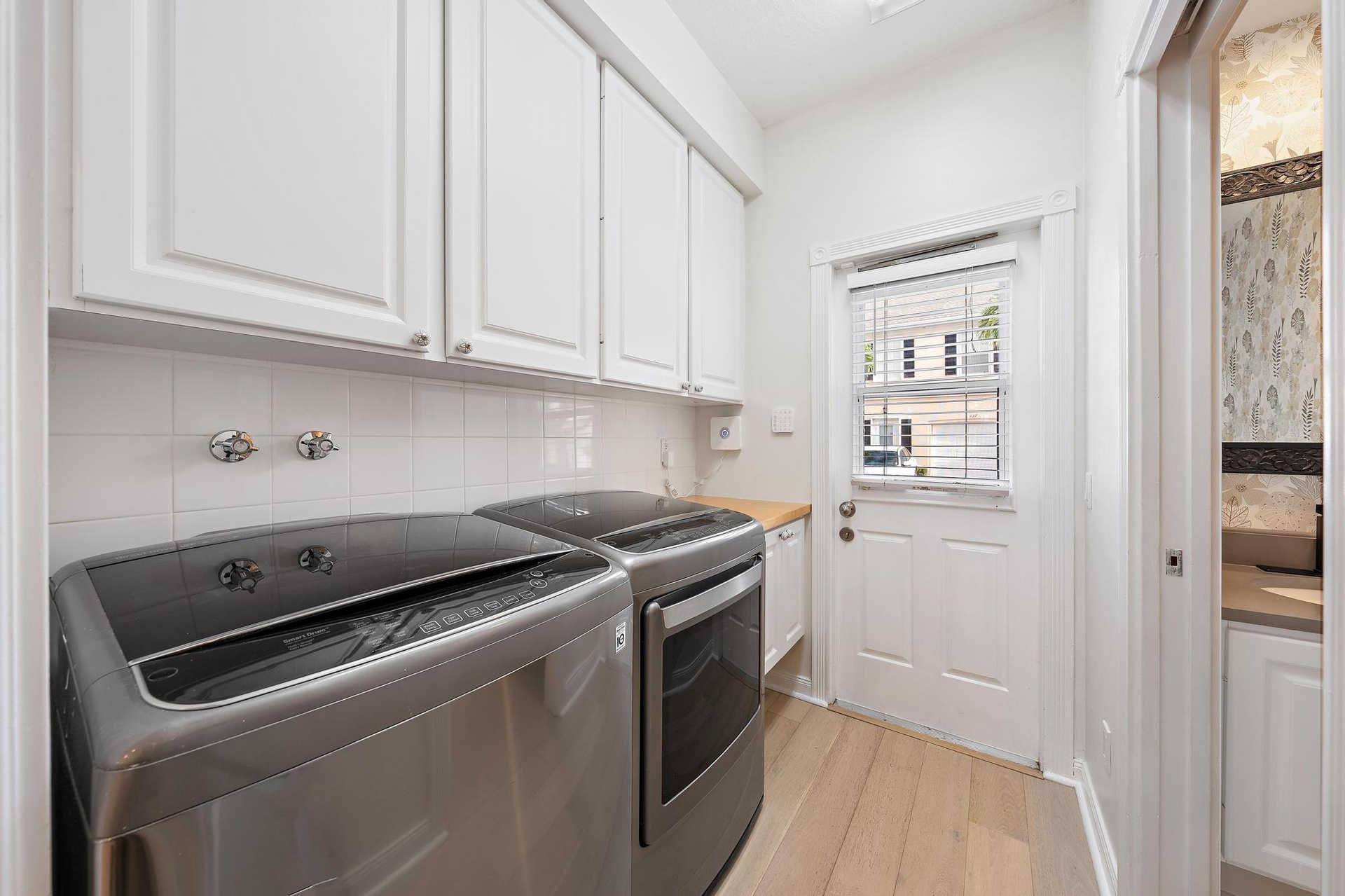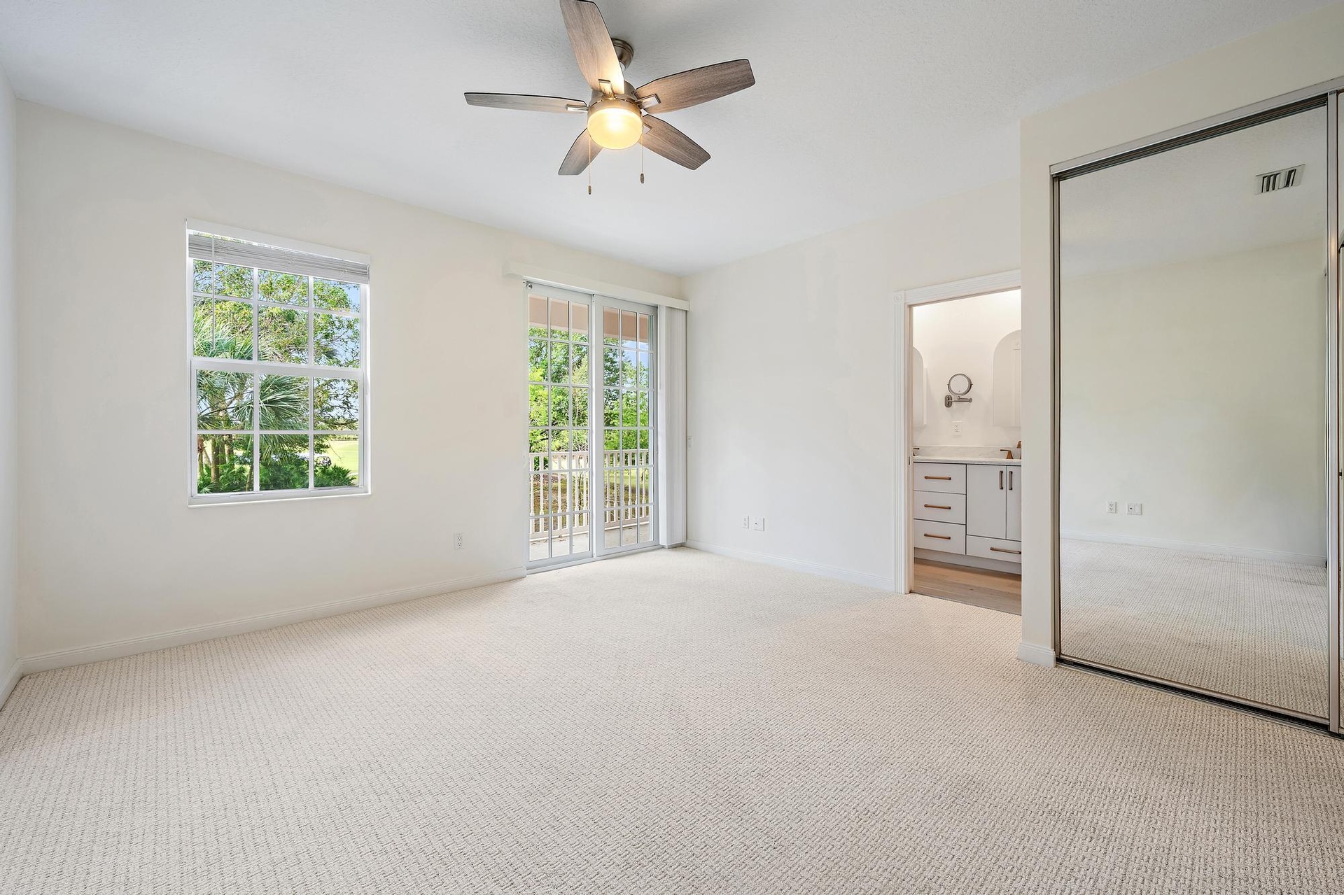 Peaceful golf course living in Charleston Court at Abacoa. This 3-bedroom, 2.5-bath townhome offers serene green views and a beautifully updated interior. The light-filled layout features wood flooring and a modern kitchen with quartz countertops and newer appliances, and a custom backsplash to the ceiling. The primary suite includes a private balcony overlooking the golf course—ideal for quiet mornings. Additional features include impact windows, updated primary bath, central vacuum, and a one-car garage. Walk to the community pool and enjoy easy access to Jupiter's dining and shopping.