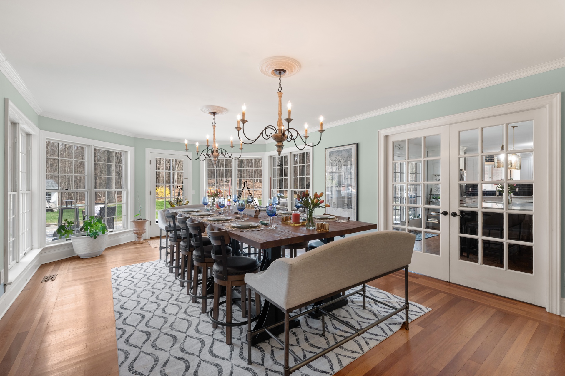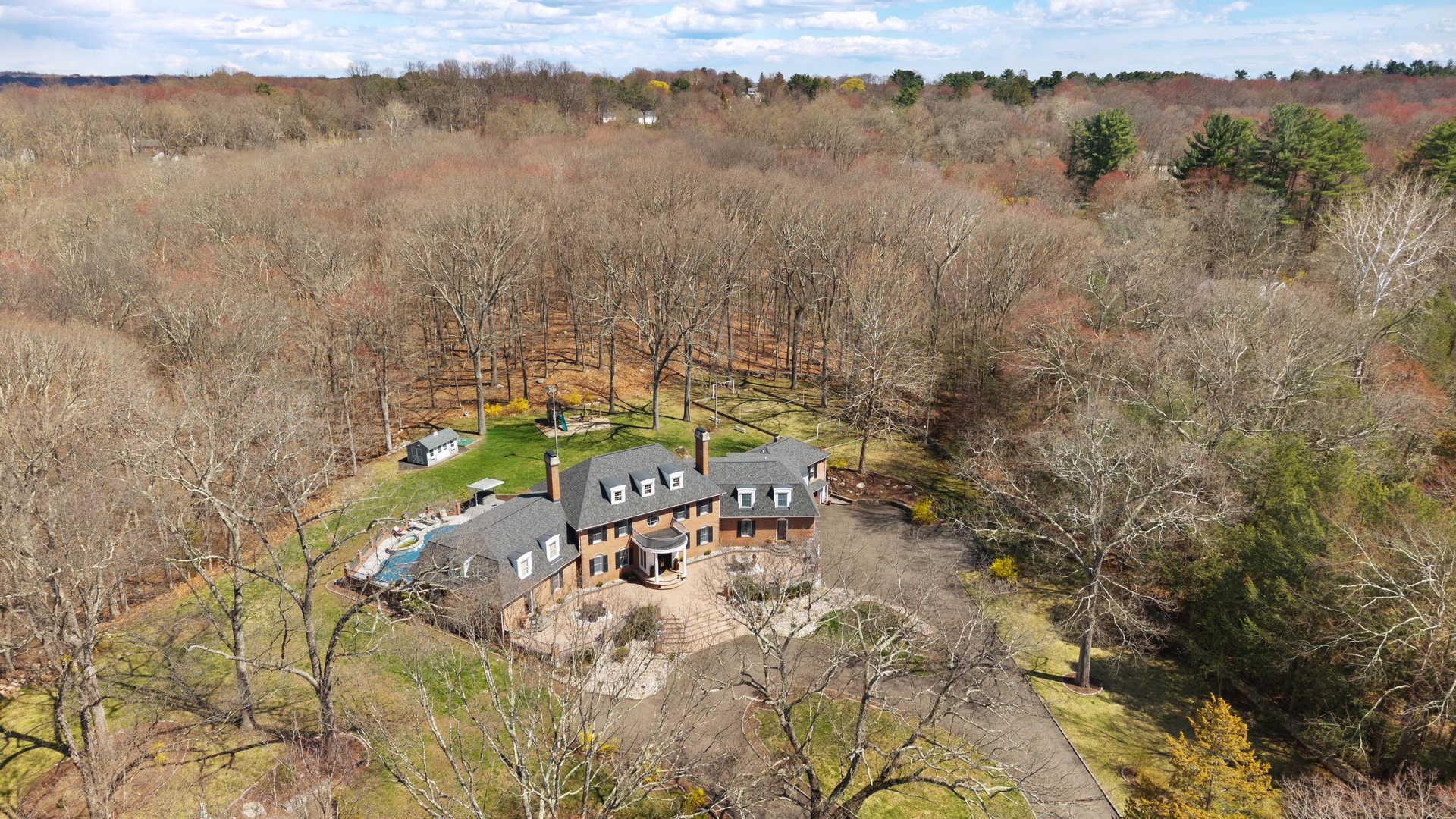 20 Cherry Lane is a beautifully updated brick Georgian Colonial blending classic architecture with modern upgrades. A new 2024 roof and updated HVAC, water, electrical, and plumbing systems offer true turnkey living. Designer lighting and a renovated oversized 4 car garage with new floors and high-tech doors add to the home's appeal. The newly renovated kitchen features marble countertops, a navy subway tile backsplash, a custom coffee/wine bar, and double ovens and dishwashers. Renovated living and dining spaces include five wood burning fireplaces. A private in-law suite with separate entrance offers a full kitchen, living room, one bedroom, and one bath. Additional highlights include expansive great room, elevated office, updated primary suite with 3 walk-in closets, renovated laundry and wet bar, plus a lower level gym, spa, and playroom. Outdoors, enjoy a restored pool and spa, landscaping, fire pit, and generous flat lands with reclaimed acreage.