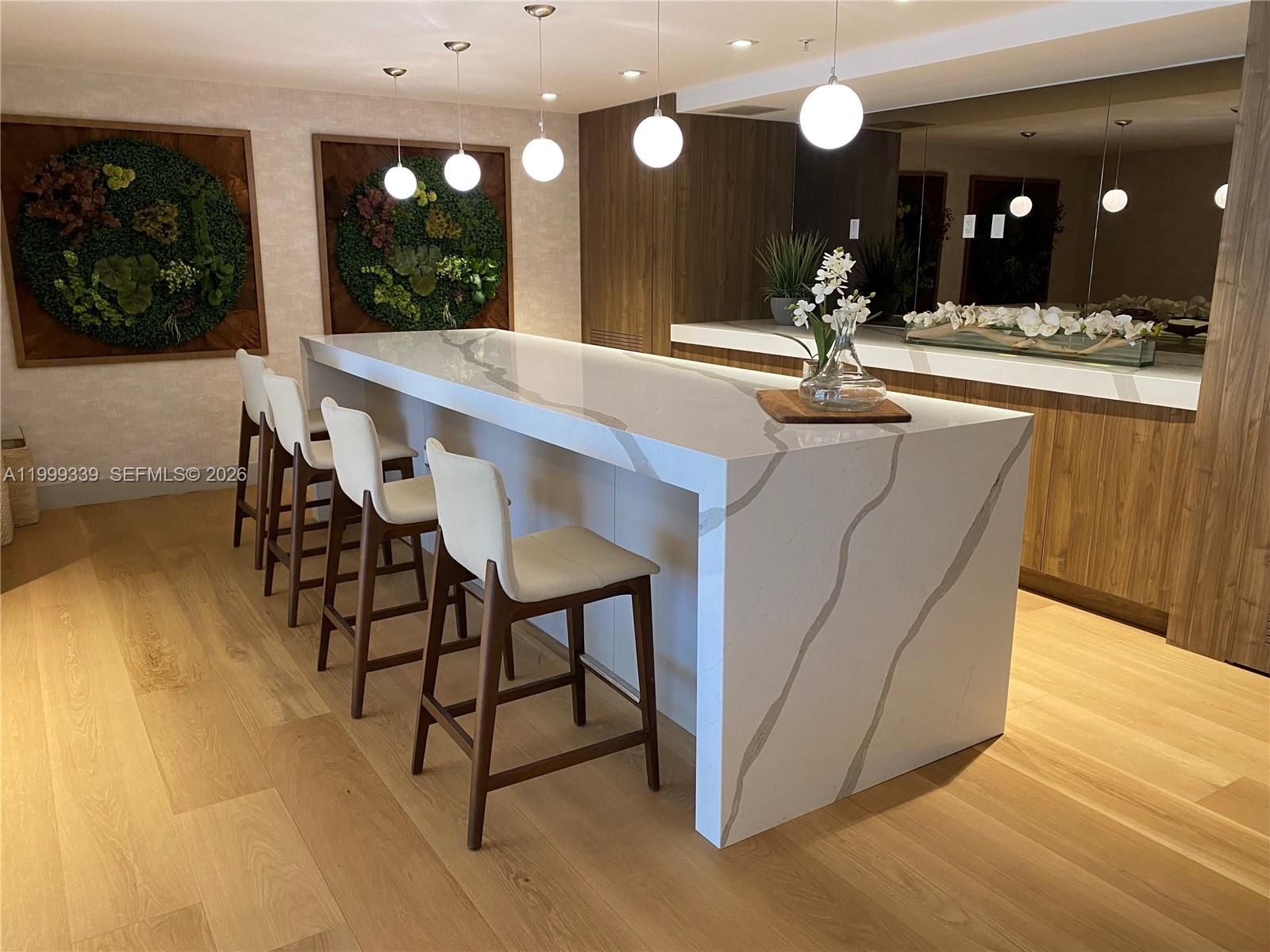 Amazing view!!! Spacious 1 bedrooms plus den and two full bathroom with lots of natural light. Den can be converted into second bedroom. 9ft-high ceilings, featuring floor to ceilings glass hurricane impact windows, Subzero, Wolf & Electrolux appliances, Mia Cuccina Kitchen. Stone counter tops thru out and double sinks in the primary Room with a walk-in closet. Key fob operated elevators, covered parking, two unassigned parking spaces and valet service. Enjoy beautiful views of Biscayne bay, ocean and city from the roof top terrace of Bijou in Bay Harbor Islands while relaxing by the pool. Common area includes relaxing social sitting to gather with friends and family. One year Membership to Exhale Spa.