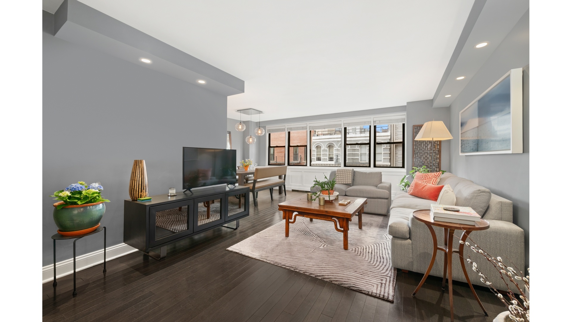 There is a certain quiet confidence to Gramercy Park, a rhythm that feels both rooted and rare. At its center, this oversized one bedroom unfolds with remarkable scale, where volume and light take the lead. Expansive proportions allow each area to breathe, while oversized windows draw in brilliant natural light throughout the day, casting a warm, steady glow across rich hardwood floors. The result is a home that feels both elevated and effortless, generous in size yet composed in its design.