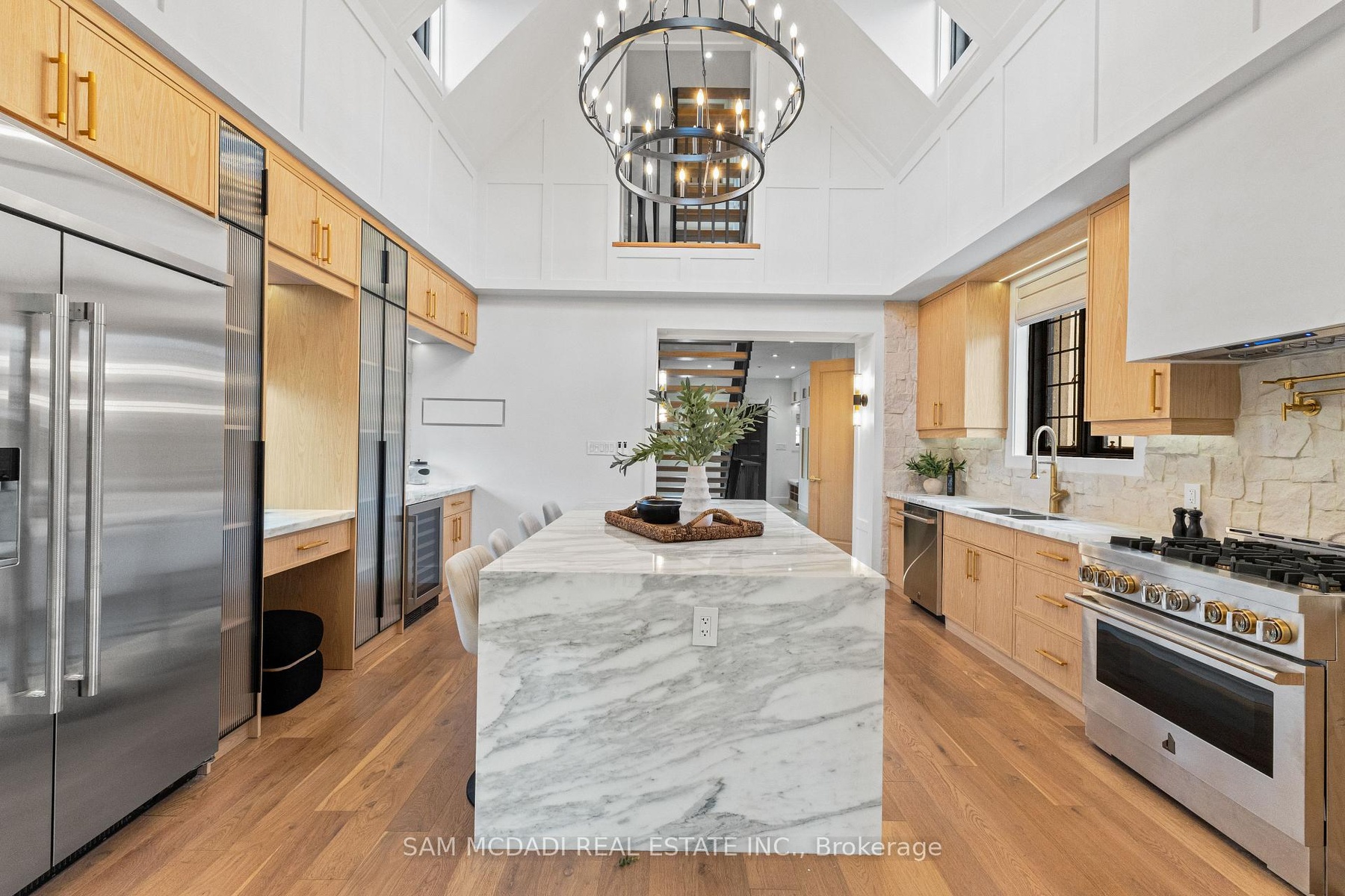 Welcome to the famous George Unsworth home, a high quality Neo-Tudor style home constructed with cut & carved stone alongside a textured stucco exterior finish. Redesigned by renowned architect Walter Scott, and located in Aldershot's upscale neighbourhood, this beautiful home w/ approximately 5,000 SF total has been completely reimagined w/ a modern yet charming design. Upon entering, you'll find large principal rooms enhanced with sophisticated hardwood floors, LED pot lights, panelled walls, and more. At the heart of this home is where you'll locate the chef's kitchen elevated w/ a centre island, stone countertops, JennAir appliances, charming stone backsplash and ample cabinetry space. Overlooking the kitchen is the grand family room, which boasts cathedral ceilings, a stone fireplace, and direct access to your covered outdoor patio, perfect for al-fresco dining with loved ones. Also on this level is the formal living room, which features a fireplace, wood beam ceilings, and access to the outdoor patio, as well as a home office perfect for professionals working from home. Ascend to the owner's suite, curated with a boutique inspired walk-in closet, a wet-bar, and an oversized 6-pc ensuite w/ heated floors, a soaker tub, and a rainfall shower. 2 more bedrooms with built-in closets and a shared 3-pc bath with heated floors are down the hall. The loft can easily serve as a nanny or in-law suite, featuring a spacious bedroom w/ a 3-pc ensuite, a seating area, and a separate laundry room. The basement completes this home with perfect entertainment spaces incl: a wet bar, a large recreation room, a 5th bedroom, a 3-pc bath w/ heated floors, and a den that can serve as a gym, play room, spa, or theatre - the possibilities are endless. Beautifully situated in a highly rated family oriented neighbourhood nearby top rated schools, grocery stores, shopping malls, lakeside parks and trails & more. A piece of history with a modern twist!
