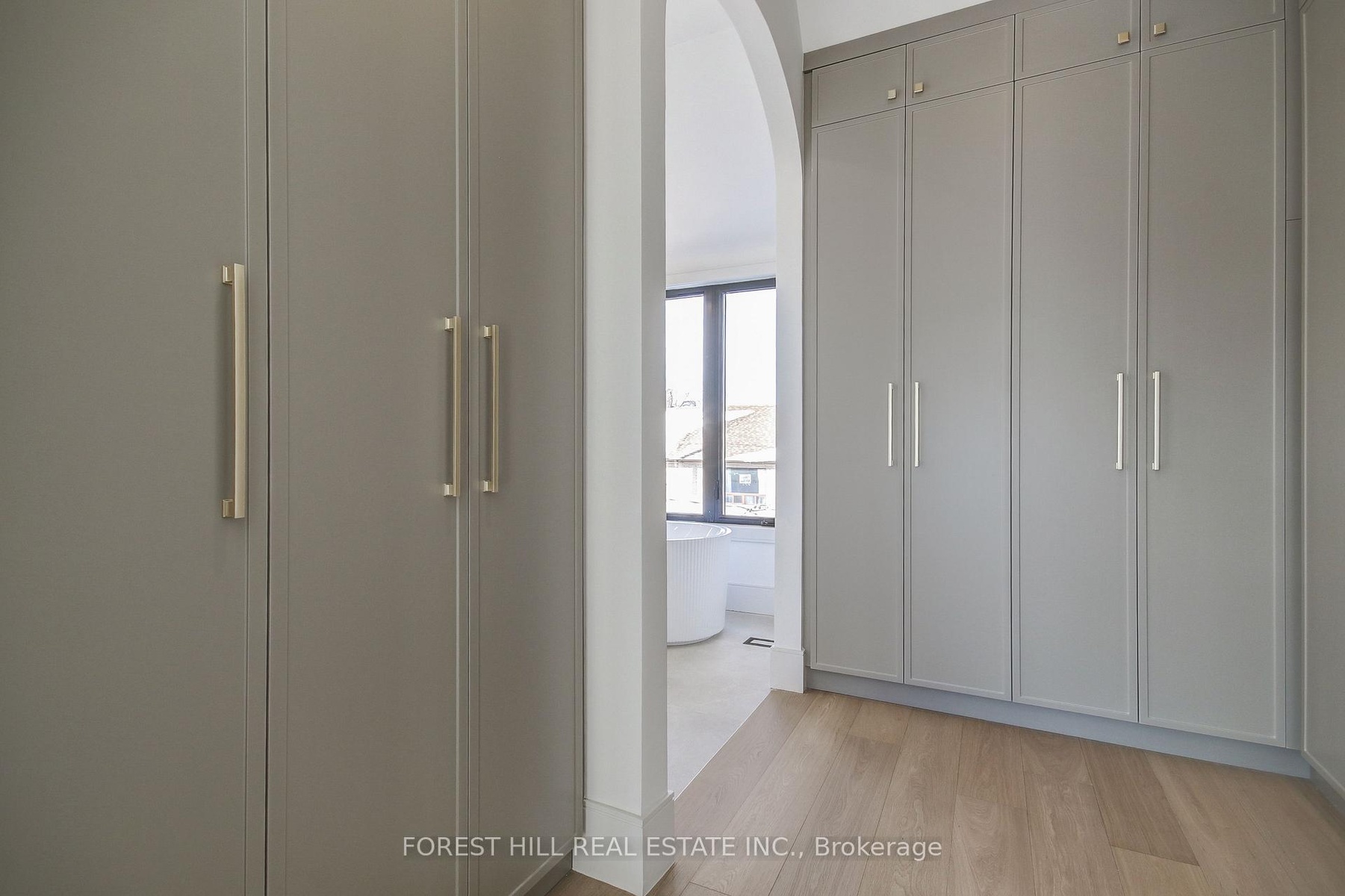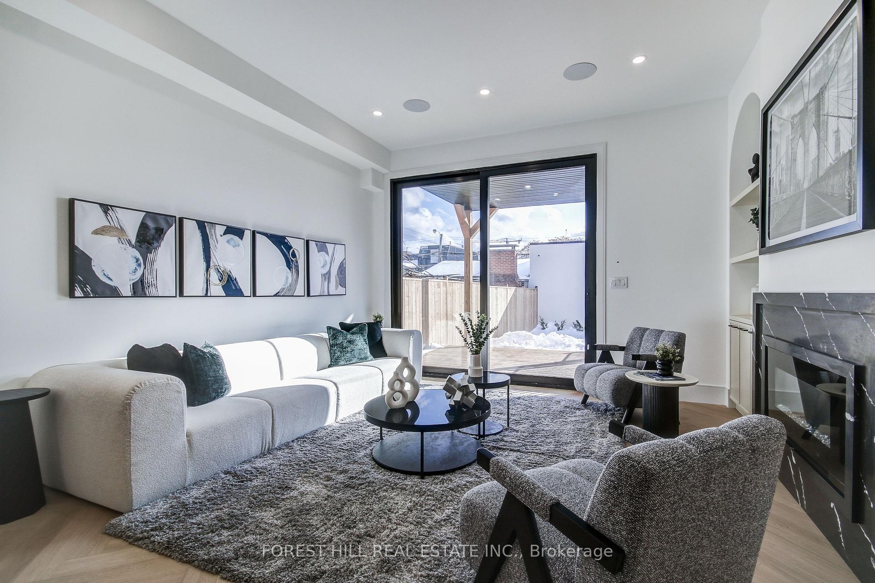 A rare offering on one of Trinity-Bellwoods most coveted streets, 21 Foxley Street is a Custom Designed, Brand new architectural gem that blends timeless elegance with modern sophistication. Set on an exceptionally deep 130-ft lot and offering over 3,500 sqft, this residence features 4+1 Bedrooms, 6 Bathrooms, and soaring ceilings throughout. The main level showcases refined open-concept living, anchored by a Designer Chef's kitchen with a full pantry wall, sculptural curved fluted island, and Top-Tier Fisher & Paykel Appliances. Upper levels offer Three Ensuite Bedrooms and a spectacular third-floor primary retreat with an expansive private terrace, striking CN Tower views, spa-inspired ensuite, and custom dressing room. The fully finished lower level includes a Home Theatre, recreation space with full kitchen, Fifth Bedroom, and Second laundry. Complete with premium finishes, integrated technology, and a 12-ft high Double Car Garage with EV charger. Ideally positioned in the heart of Trinity-Bellwoods, just steps to top-rated schools and TTC. Set within one of the City's most dynamic enclaves, offering world-class restaurants, sophisticated nightlife, distinctive boutiques, and a vibrant arts community. A home that truly stands apart!