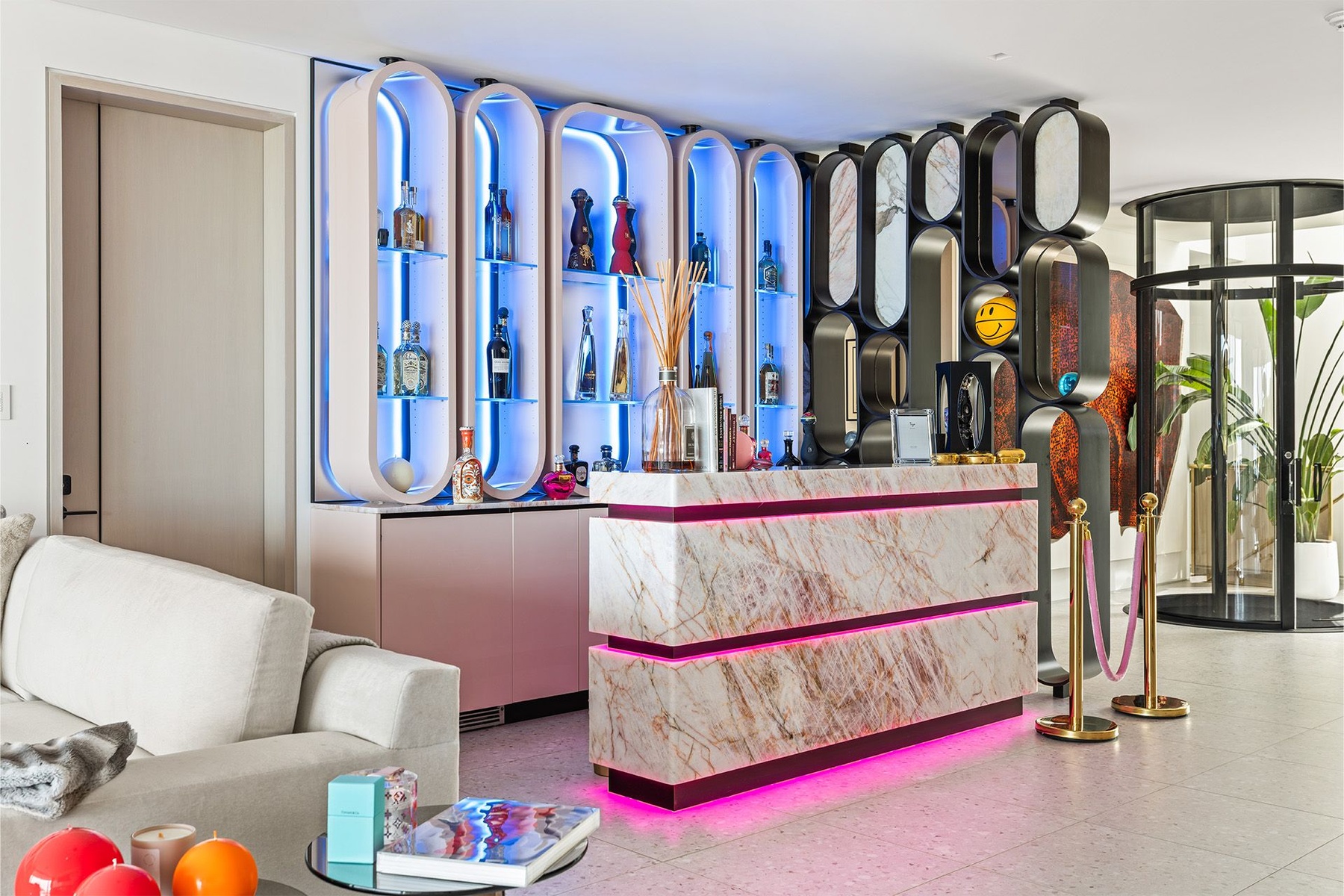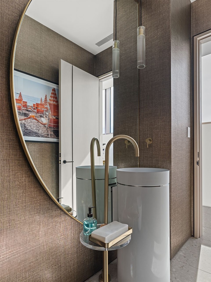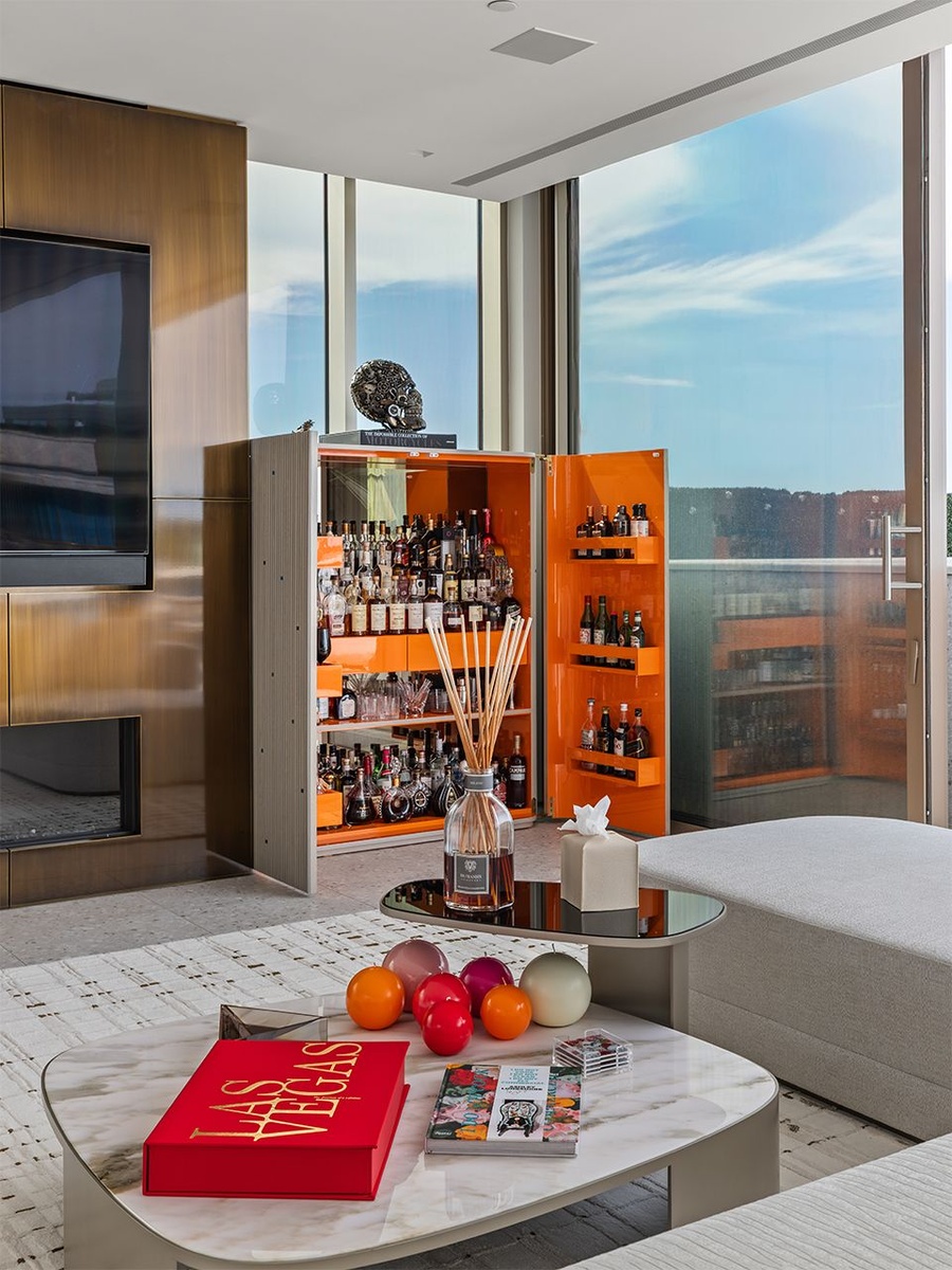 Spanning an impressive 16,974 square feet across four levels, the estate is conceived as a vertical sanctuary where grand-scale entertaining and intimate retreat coexist effortlessly. Interiors encompass approximately 12,551 square feet of meticulously designed living space, defined by a palette of organic textures, refined finishes, and state-of-the-art systems. The residence offers eight expansive bedroom suites and ten beautifully appointed baths, thoughtfully arranged to accommodate family, guests, and live-in staff with complete comfort and privacy.