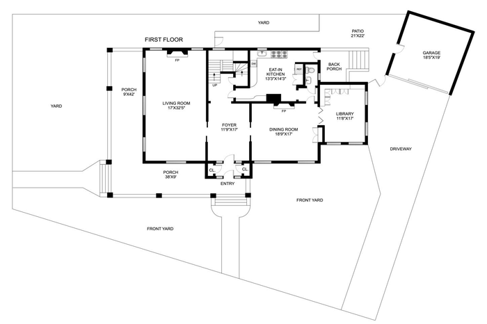 Inside, timeless details shine through with hardwood floors, original millwork, stained-glass windows, and three working fireplaces throughout. A cozy vestibule with dual closets gives way to a grand foyer which leads to formal living and dining rooms, a refined, south facing library and a recently renovated, east facing, sunlit eat-in kitchen equipped with a 48" Viking double oven and ample cabinet space. This big kitchen holds a powder room and gives direct access to a private garden and back deck ideal for everyday living and entertaining.