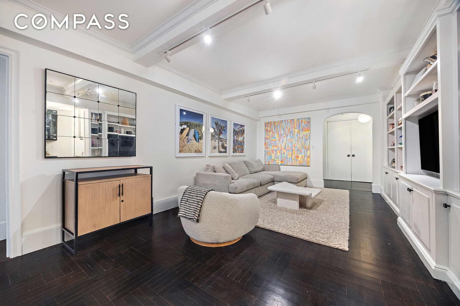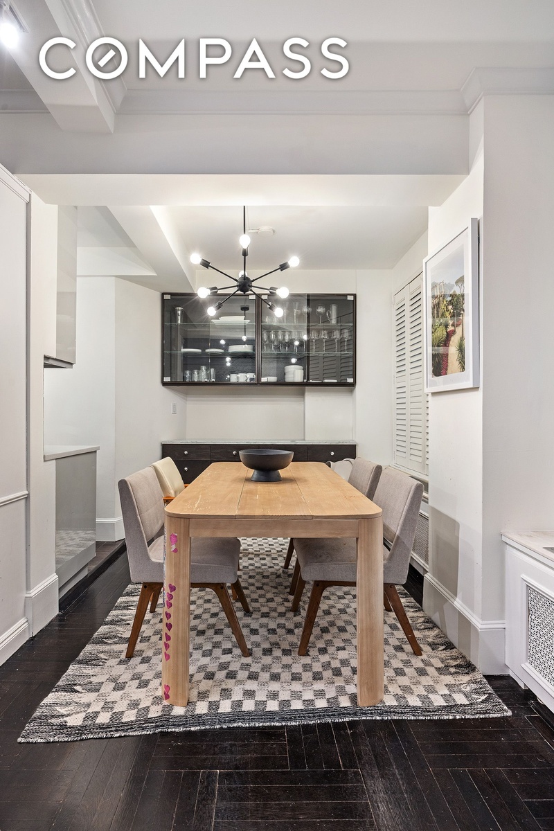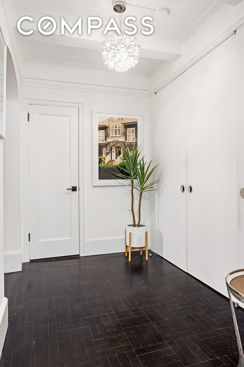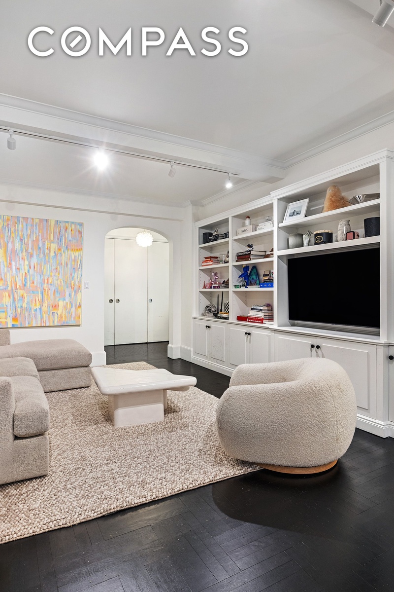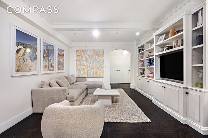Additional highlights include six fully outfitted closets, 9-foot beamed ceilings, beautiful hardwood floors, crown and baseboard moldings, custom radiator and A/C covers for through-wall air conditioning, and multiple thoughtfully designed built-ins throughout - making the apartment exceptionally livable and storage-rich.