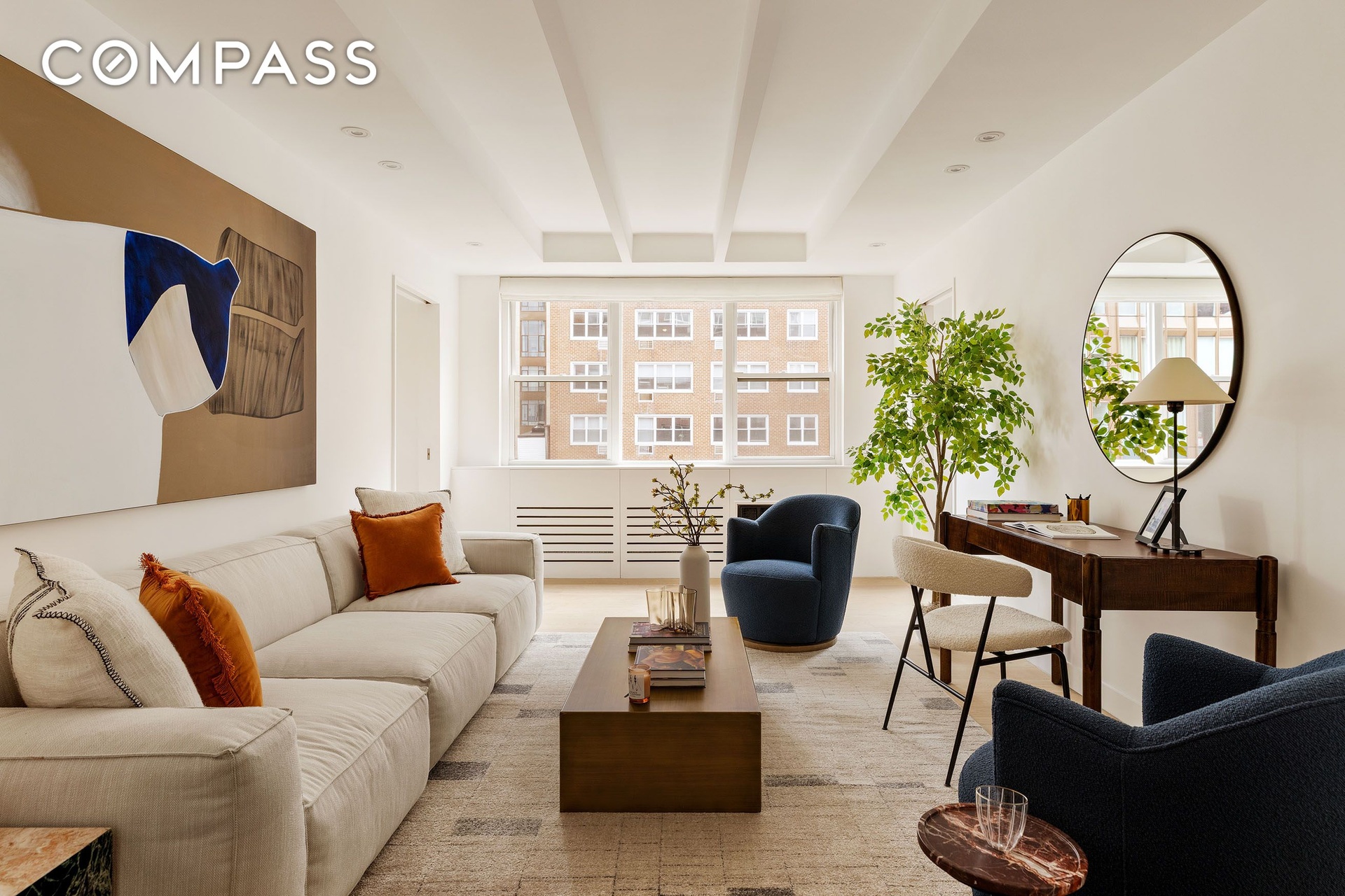 Drift past Gramercy Park, one of the most exquisite, private, gated sanctuaries in the city, with its splendid boxwood-lined pathways and flowering trees, to arrive at this ultra-conveniently located co-op. The doorman greets you in the intimate lobby that's attended 24 hours per day, all week. An elevator ride welcomes you to the 8th floor, where the hallways have been beautifully renovated.