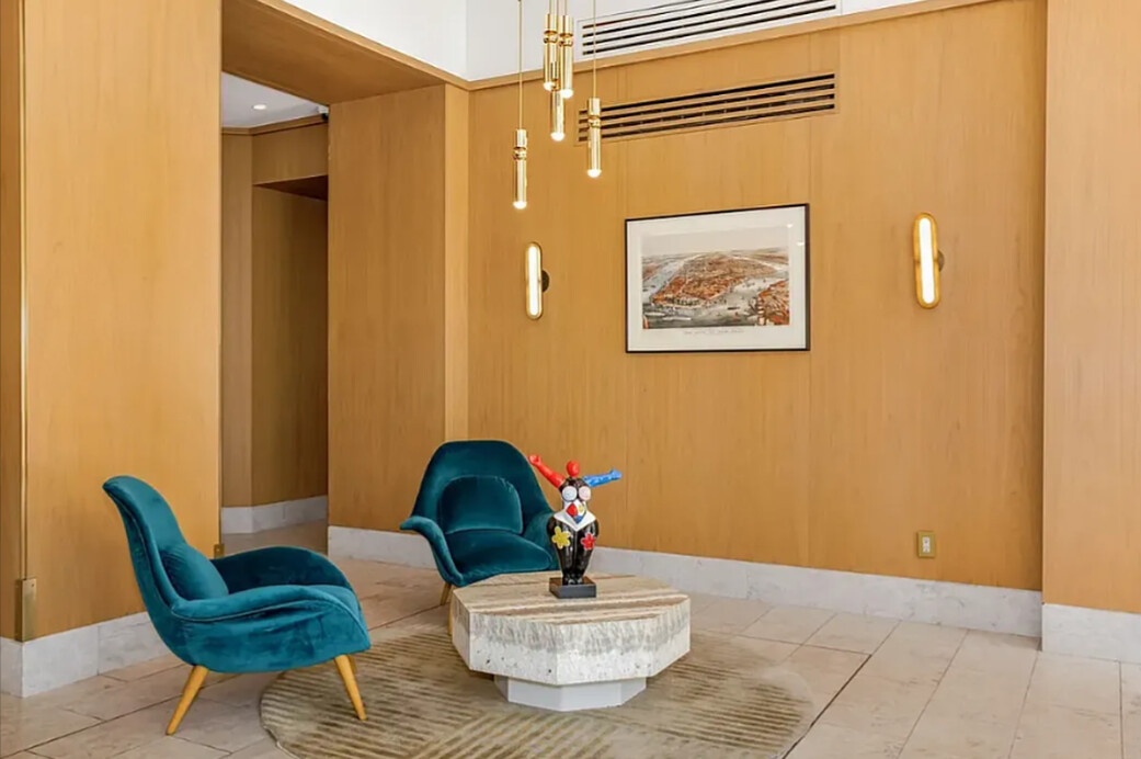 The living room has mesmerizing views of the Statue of Liberty and the Hudson River. As soon as you look out the window, the chaos and frenetic energy of the city melt away. The living room easily accommodates an entertaining, dining and work-from-home space. The king sized bedroom has two large closets and the same south-western views. The spa-like bathroom completes this perfectly conceived apartment.