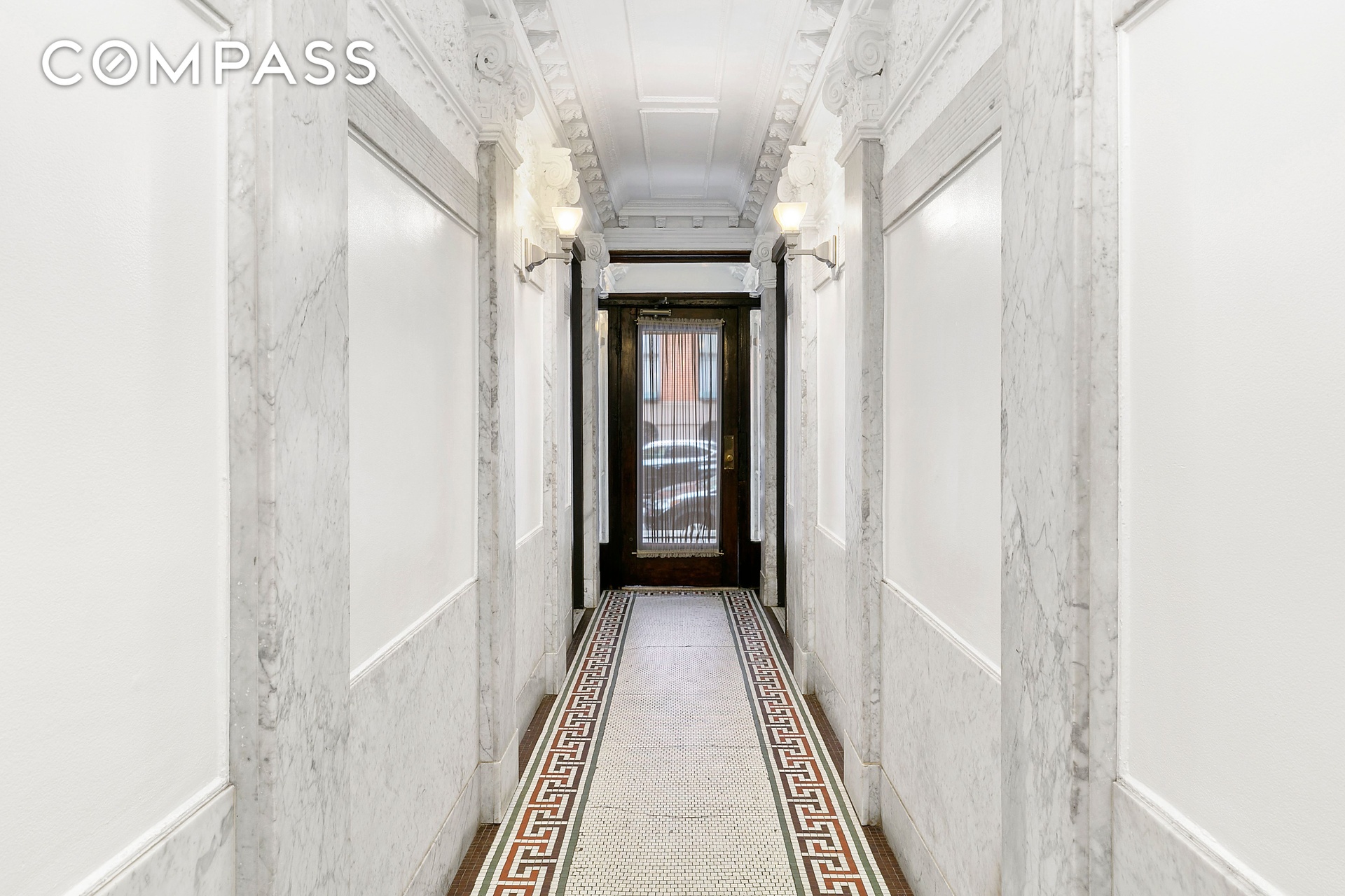 The building is beautifully maintained and filled with original charm, including ornate moldings, decorative ceramic tile floors, and marble staircases in the common areas.