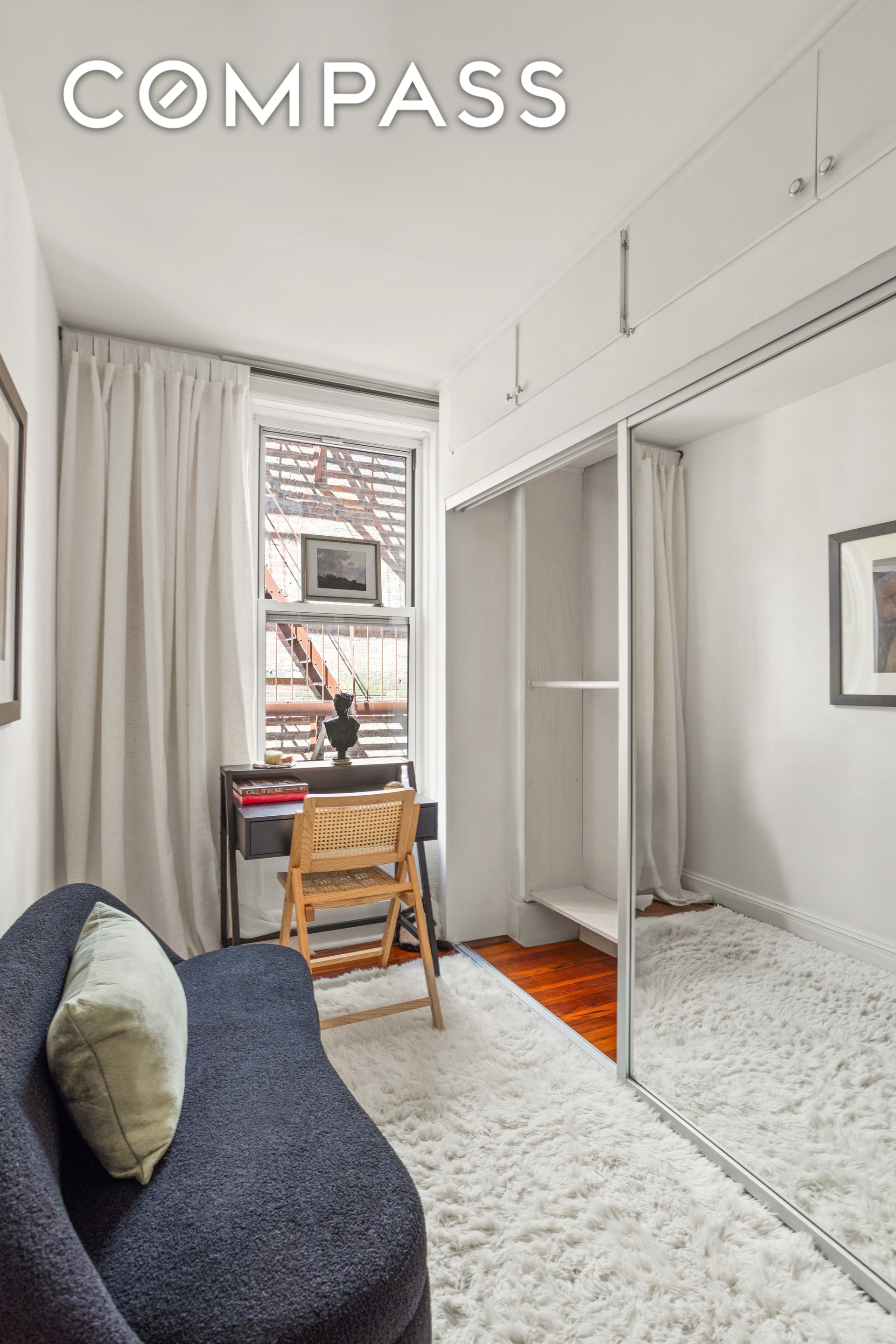 One bedroom enjoys south-facing views overlooking historic St. George’s Church—famously attended by J.P. Morgan in the 1800s (and don’t worry—no church bells!). The second bedroom can be reconfigured to comfortably fit a full sized bed and desk.