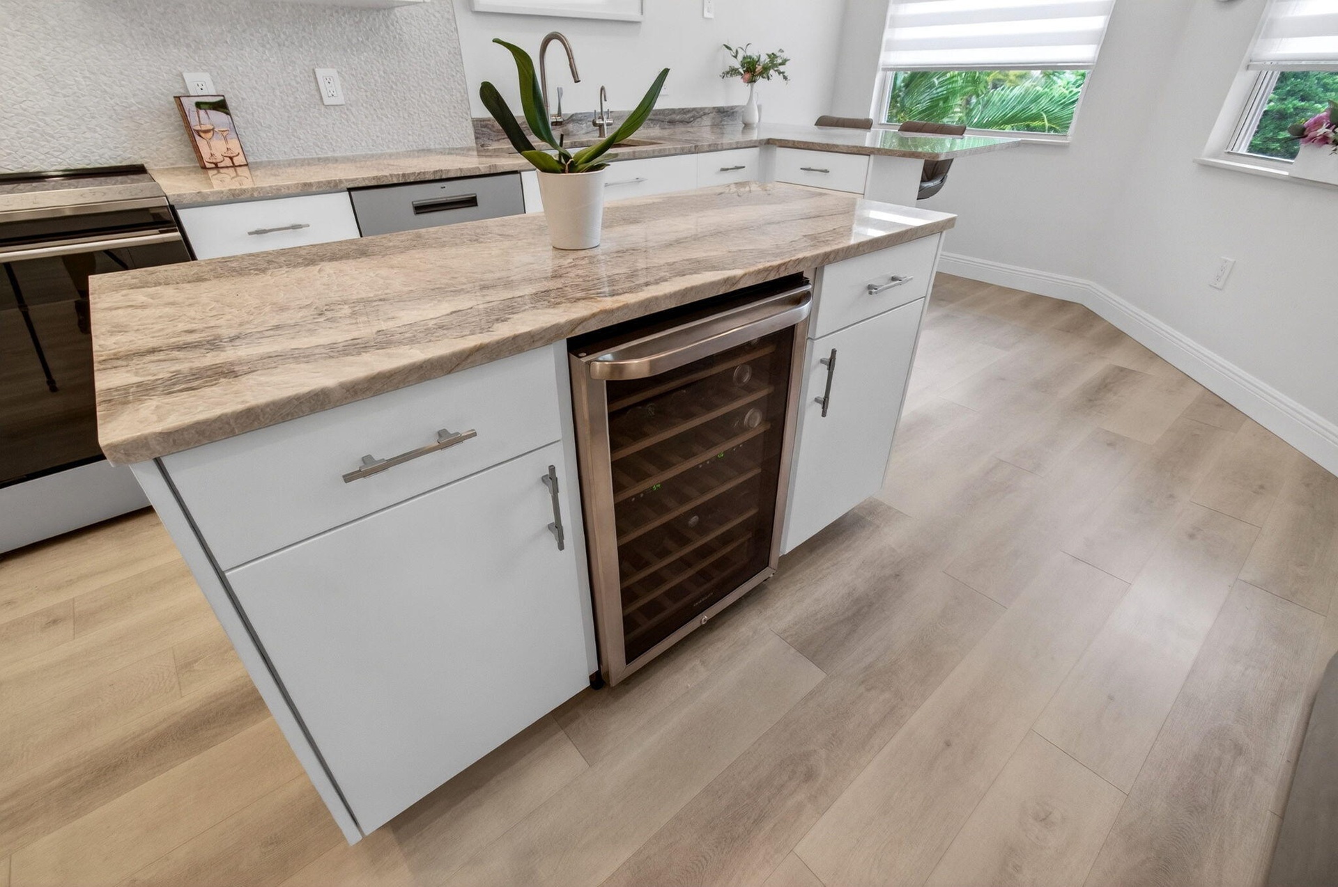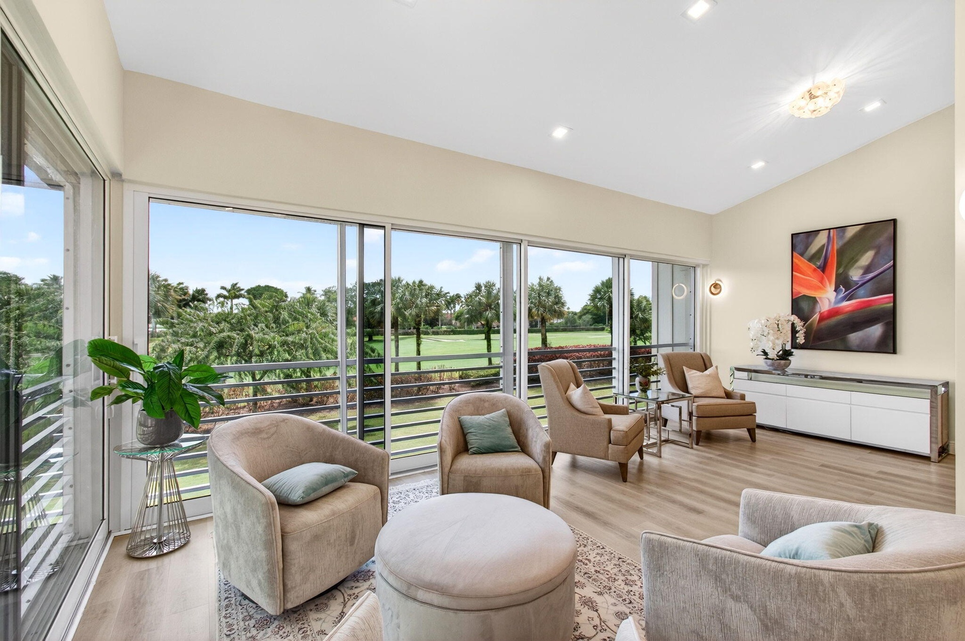 Experience elevated living in this fully remodeled penthouse residence located in the prestigious Broken Sound Country Club. Offering 3 bedrooms, 3.5 bathrooms, and 2,778 square feet of refined living space, this exceptional condo blends modern design with everyday comfort. Luxury vinyl flooring runs throughout, complemented by high ceilings and skylights that fill the home with natural light. Expansive panoramic windows showcase stunning golf course views and slide open to create a seamless indoor-outdoor living experience. The beautifully updated kitchen is designed for both functionality and style, featuring a large passthrough to the dining area, abundant cabinetry, a center island with a wine fridge, and a clean, modern layout ideal for entertaining. The primary suite is a true etreat, offering golf course views, a walk-in closet, and a well-appointed bathroom with dual sinks. The guest bedrooms each feature en-suite bathrooms, providing comfort and privacy for family and visitors. Additional highlights include a private pneumatic air elevator, enhancing both convenience and exclusivity. This penthouse offers a rare opportunity to enjoy luxury, functionality, and breathtaking views within one of Boca Raton's most sought-after country club communities.