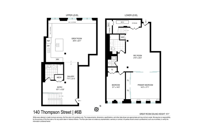 140 Thompson Street is a prewar gem built for the Marvin Safe Co. in 1903. It became a cooperative in 1978. This location is at the cross section of Soho and the West Village. Apartment 6B is a large loft-style duplex with just over 2000 square feet. The upstairs features an enormous open living room/dining room facing West with incredible light and unobstructed views. The open concept kitchen has Miele appliances and great storage space. There is a full bathroom upstairs. The apartment has retained some lovely prewar details such as rough hewn wood columns, brickwork walls, 10' ceilings, and an original entry way door frame from a bygone era. Downstairs offers a flexible layout with two nice sized bedrooms, a full bathroom and a half bathroom, a washer dryer, terrific closet space and East exposure.